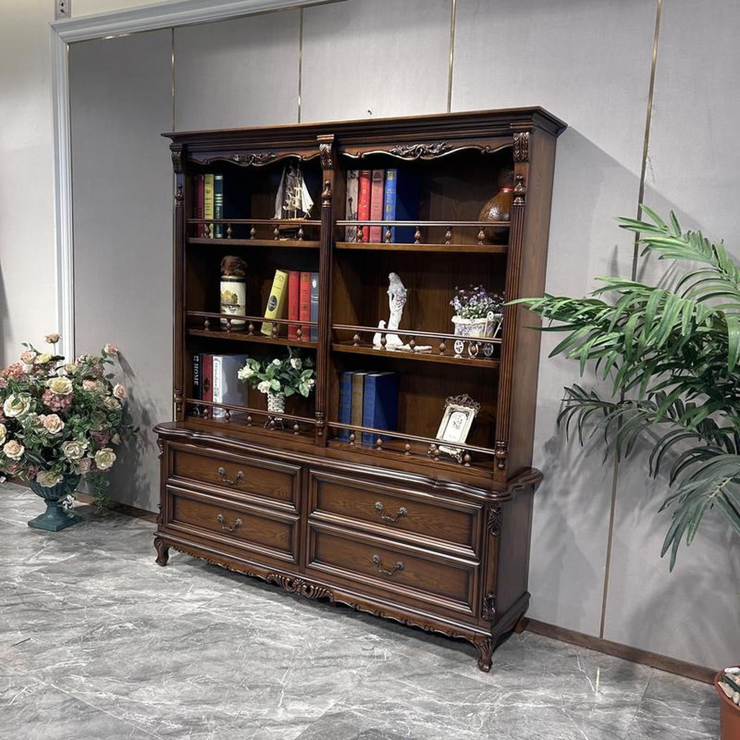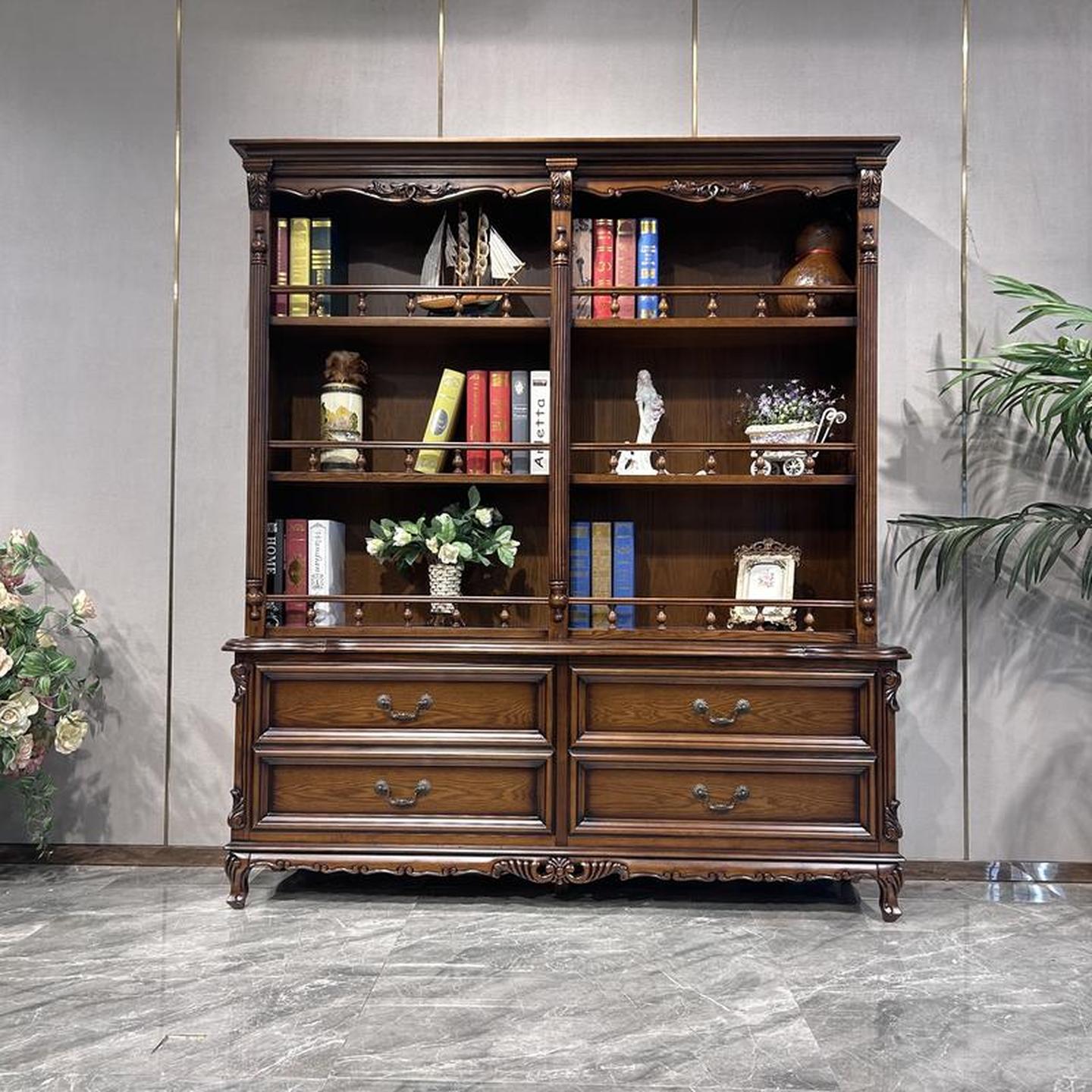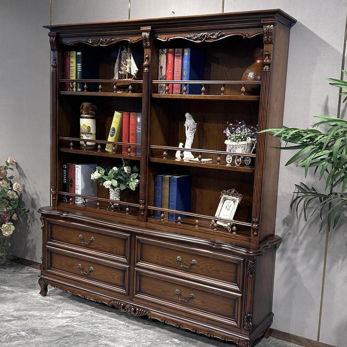 美式实木书柜客厅书房法式斗柜书架组合靠墙欧式复古收纳柜子整体
