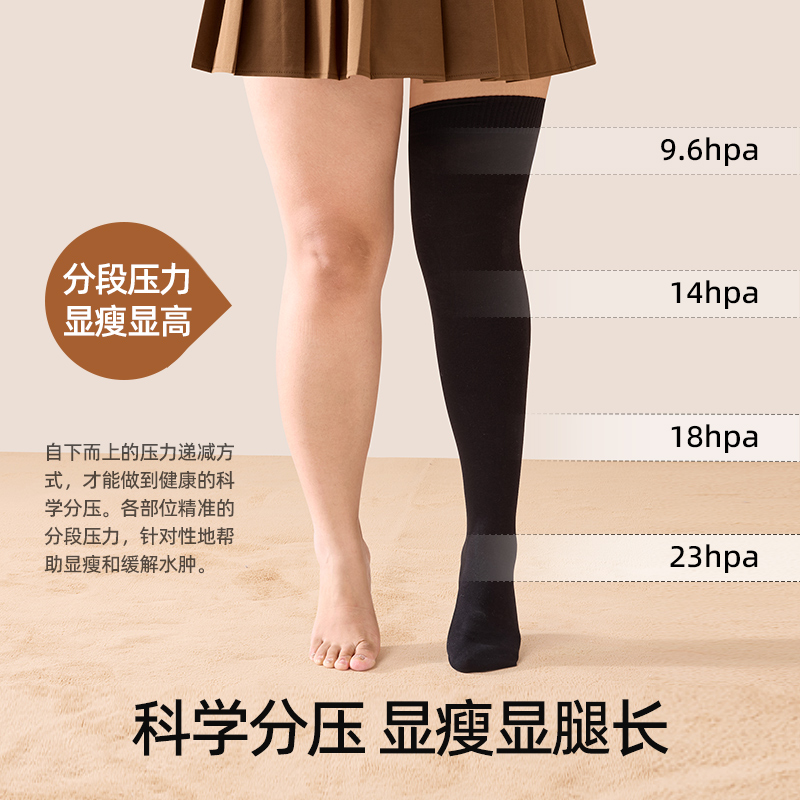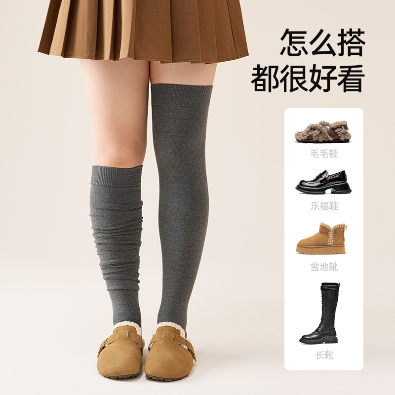 大码灰色长筒袜女秋冬款胖mm200斤高筒护膝大腿袜防滑纯棉过膝袜
