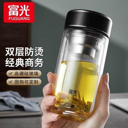 富光双层玻璃杯鹅蛋异型耐高温泡茶杯子男女车载便携透明商务水杯