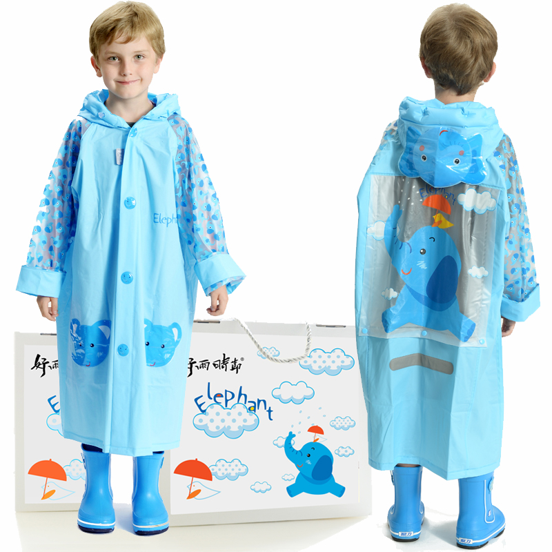 卡通儿童书包位男童女童雨衣雨鞋套装礼盒 充气帽檐春季儿童雨披