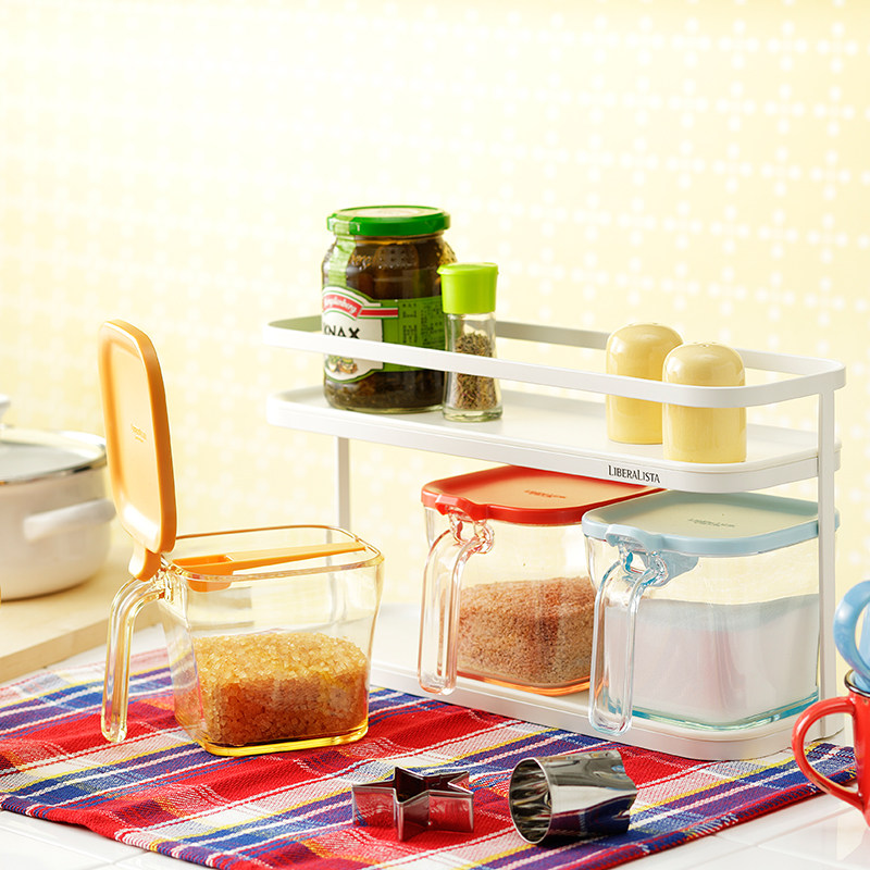 利快日本进口多彩调料瓶家用组合装塑料带勺调味盒调料罐盐罐