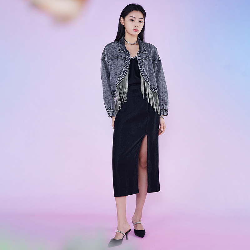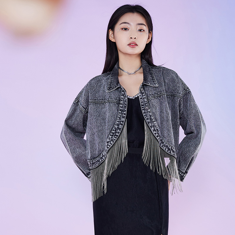莲灿正品牛仔流苏短款外套女休闲气质轻奢显瘦美式港风