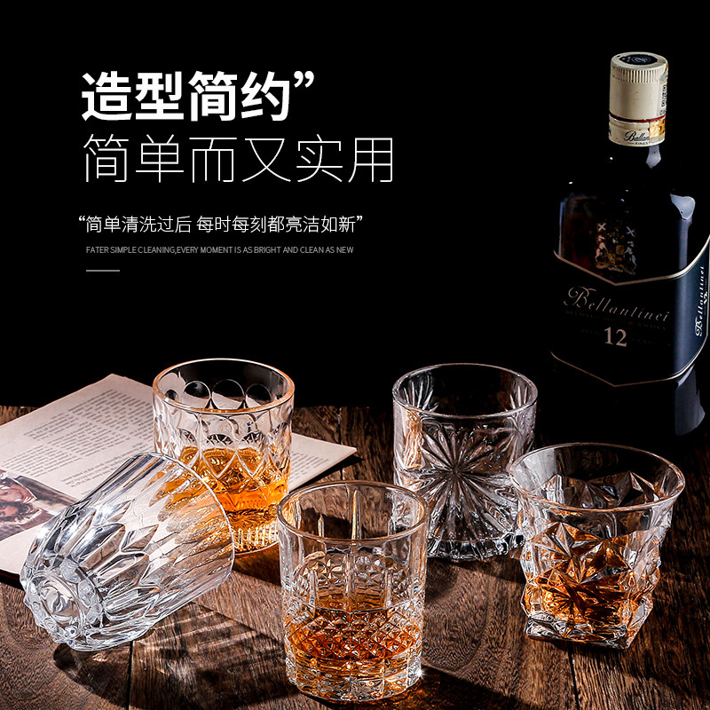 威士忌酒杯洋酒杯水晶玻璃ins风北欧古典八角家用酒具套装啤酒杯