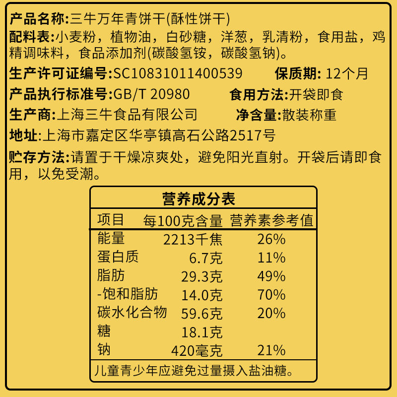 上海三牛万年青饼干葱香咸味零食