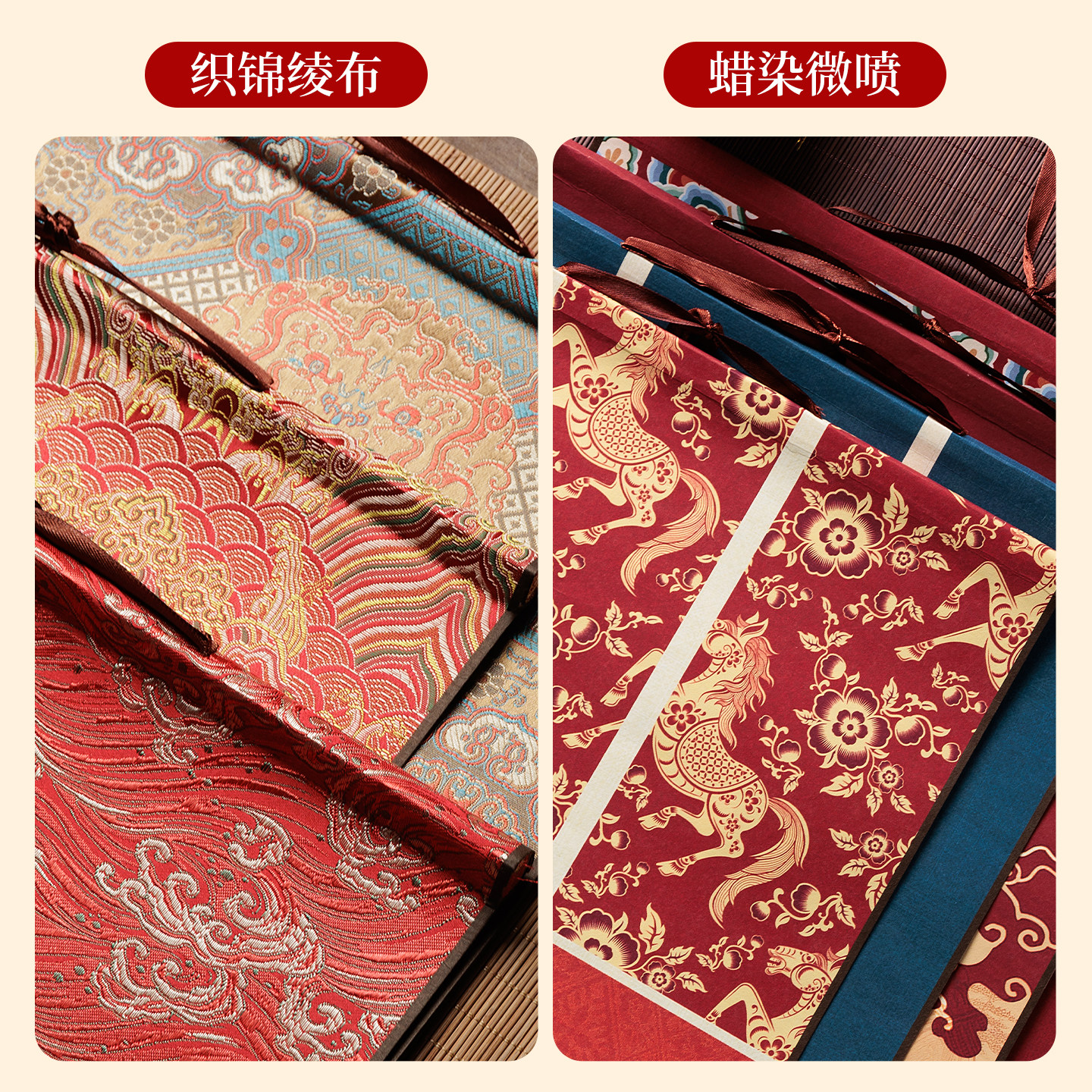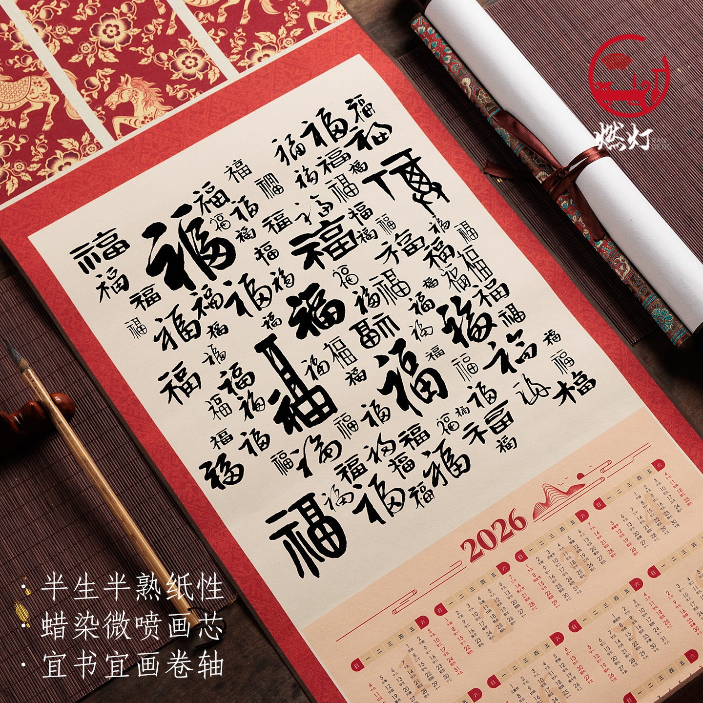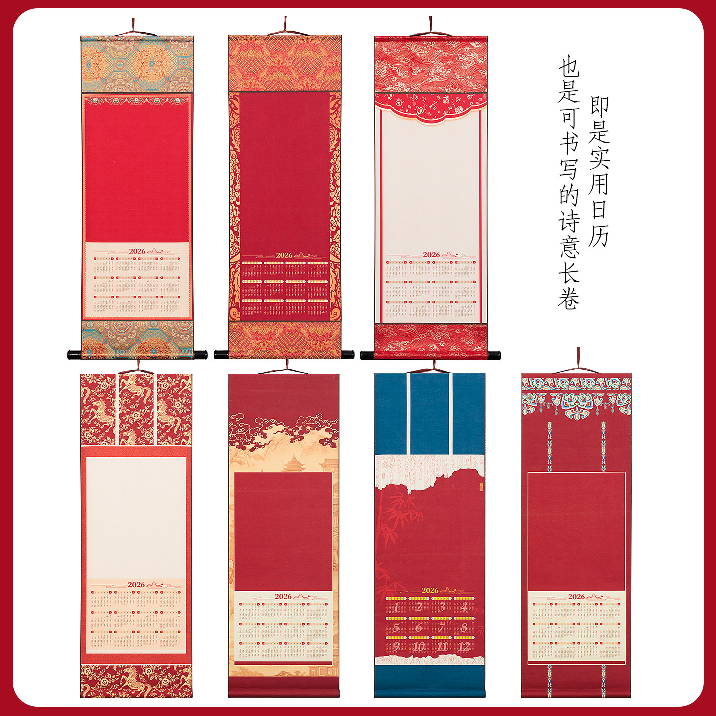 燃灯高档宋锦绫布2026年空白挂历宣纸卷轴蜡染马年日历挂轴半生熟毛笔书法作品纸专用文创万年红福字来图定制