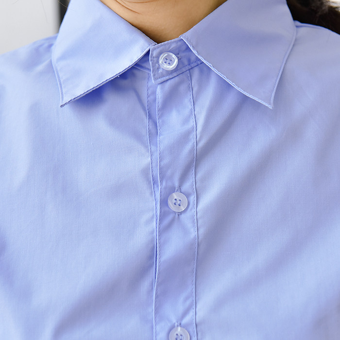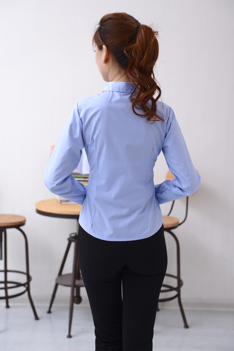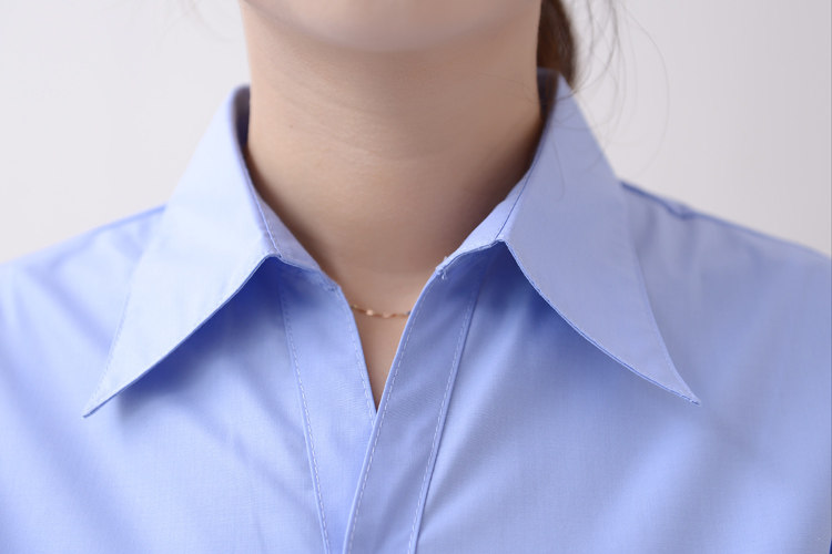 大码正装蓝衬衫修身收腰短袖职业装工装长袖女衬衣V领 蓝色