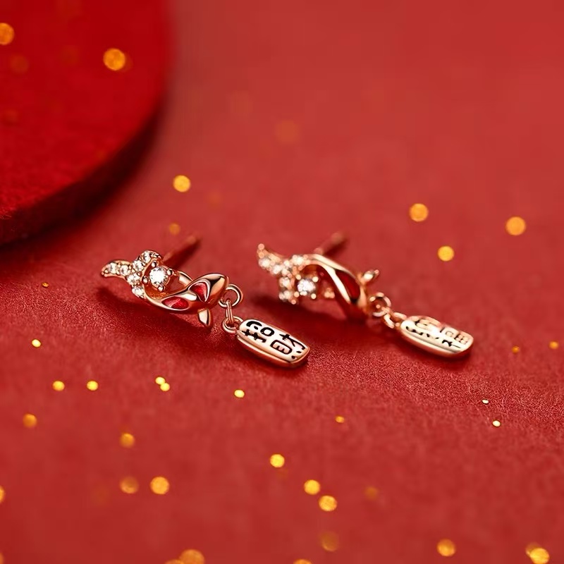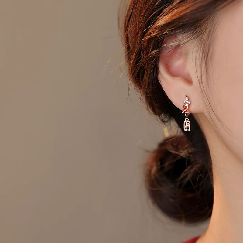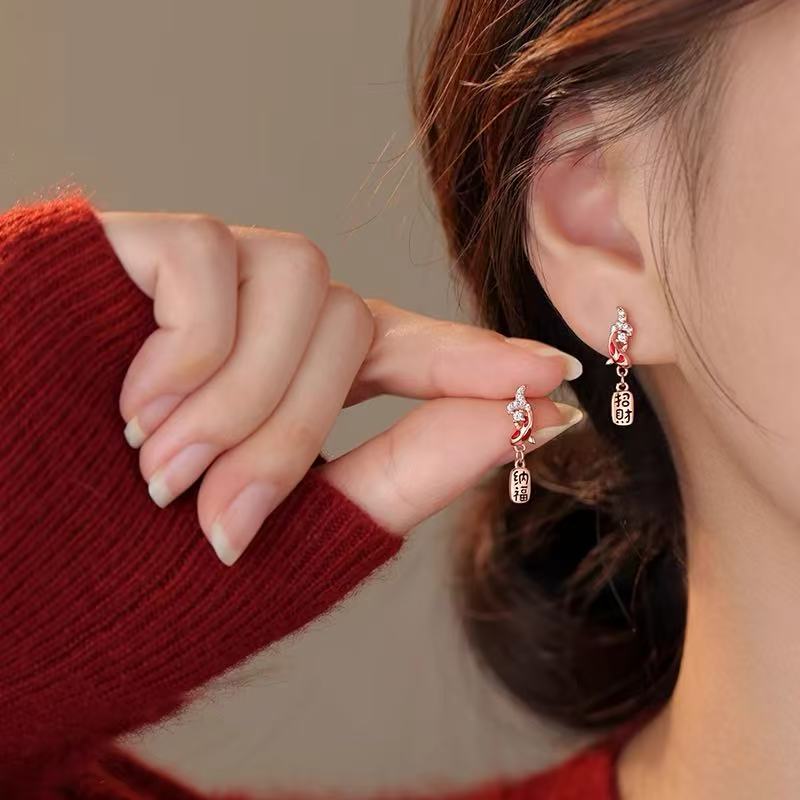 925纯银招财锦鲤耳钉小众本命年2025蛇过新年耳环女耳饰