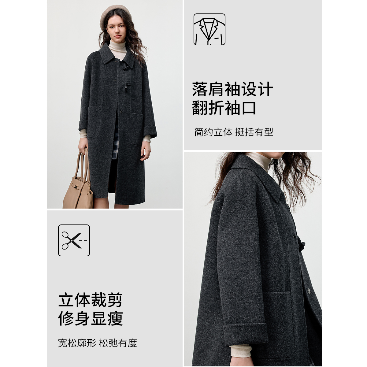 【羊绒】灰色羊毛呢子大衣毛呢外套kbne2025秋冬新款气质小个子女