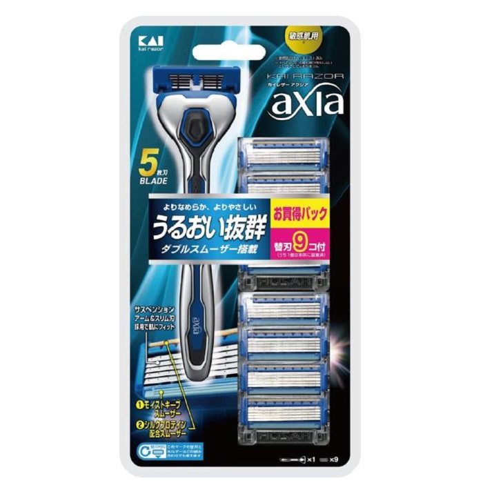 日本KAI贝印 カミソリ剃须刀 髭剃深剃 本体剃须刀架1+替刃9个