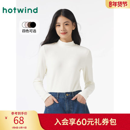热风冬季新款女士气质休闲通勤简约修身显瘦款半高领长T恤
