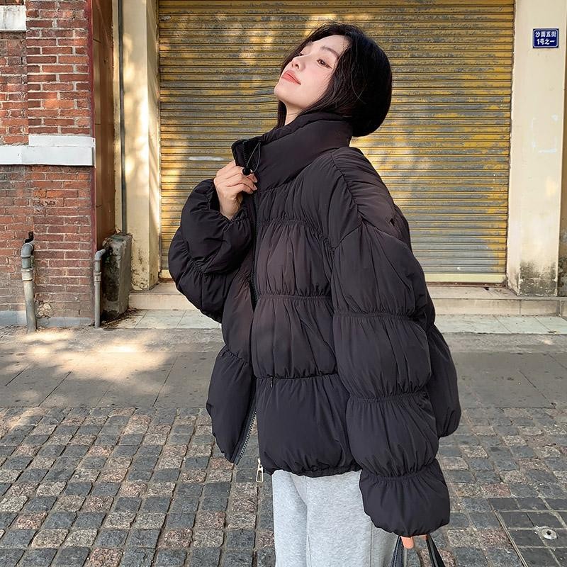 冬季女装小个子150cm显高加小码XXXS长袖抽褶棉服百搭面包服外套