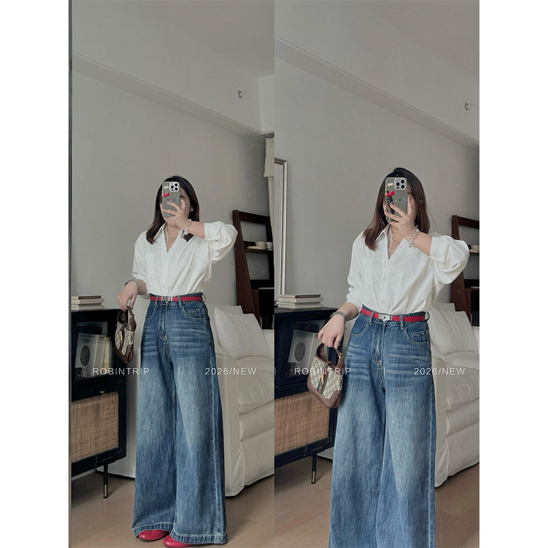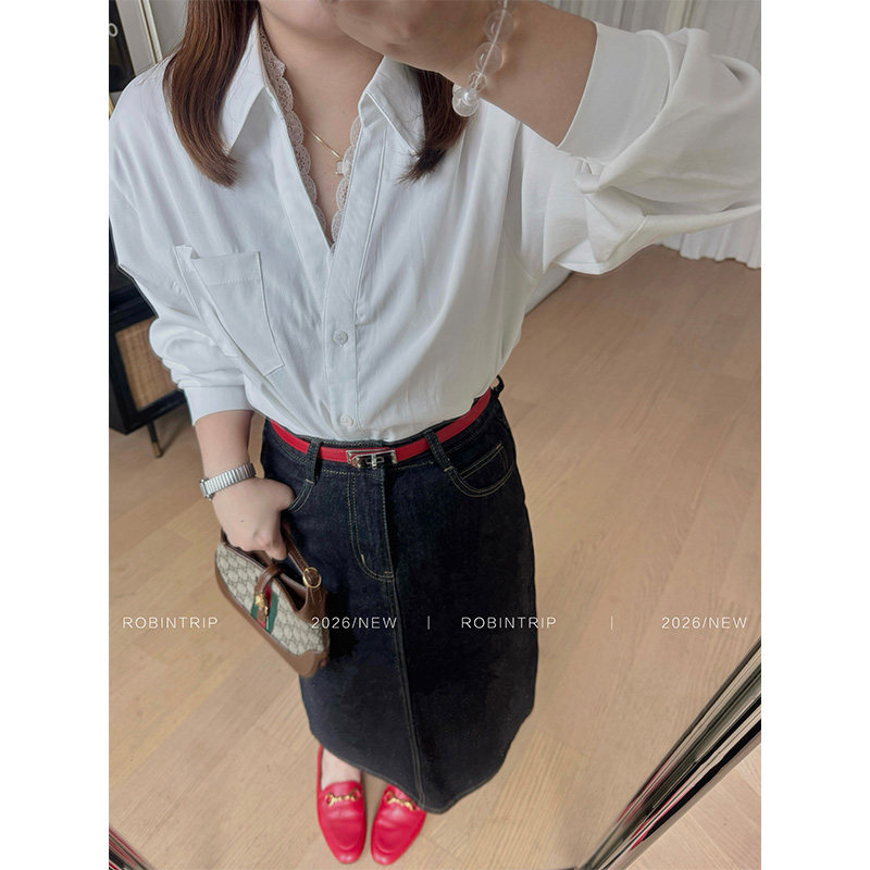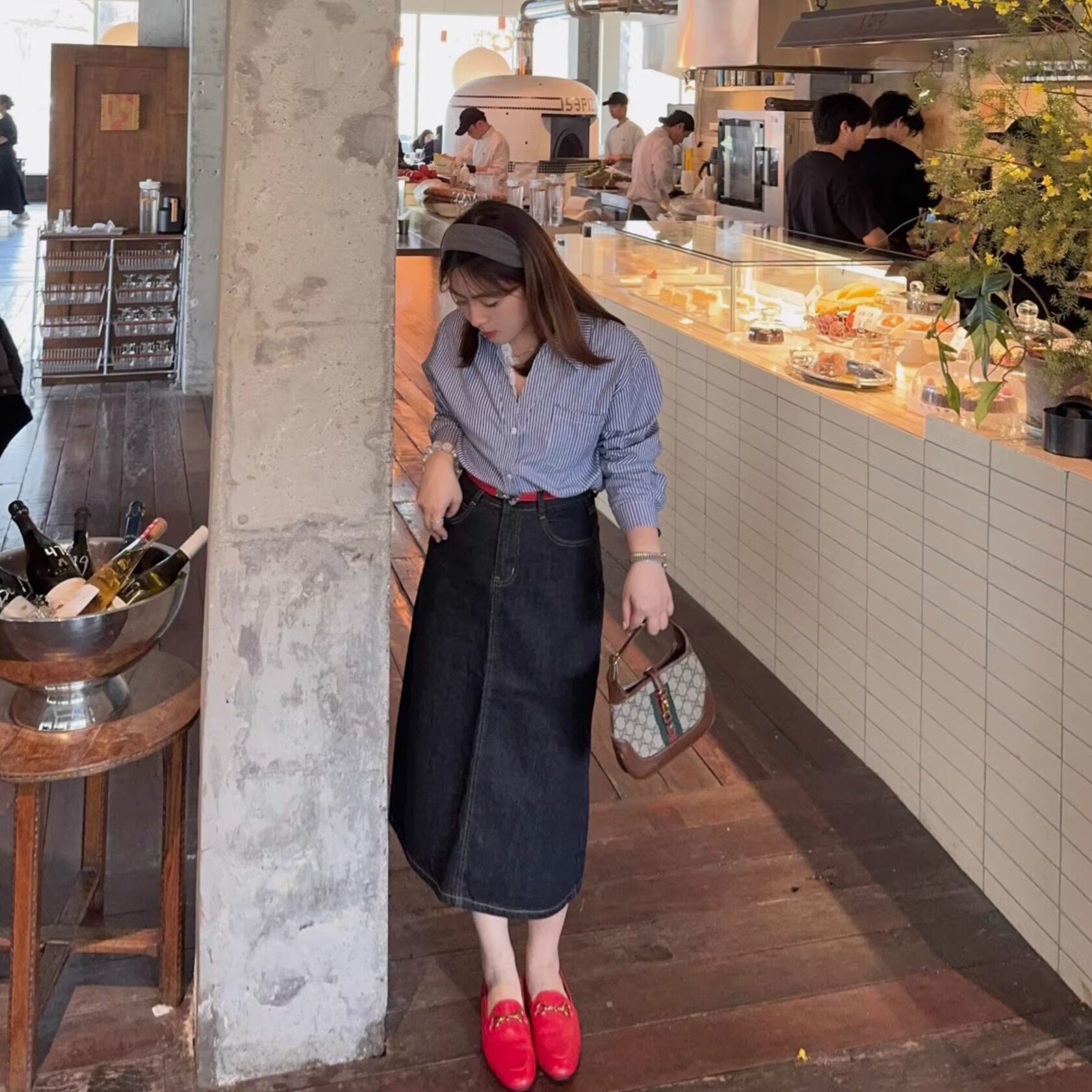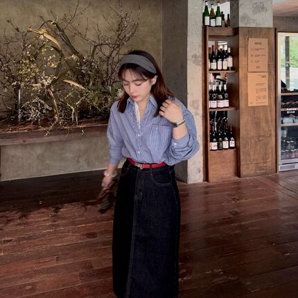 知更鸟昂酱 小个子通勤气质蓝色条纹衬衫女长袖宽松休闲百搭上衣