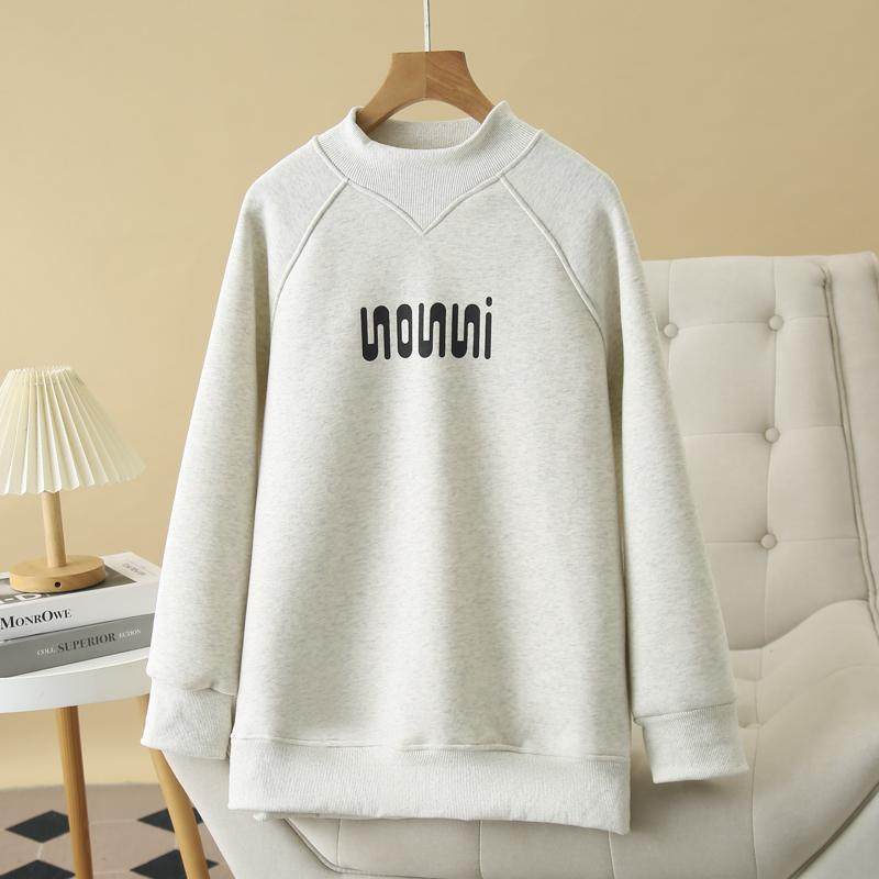 冬季新款保暖打底衫大码半高领加绒加厚字母印花休闲百搭运动卫衣