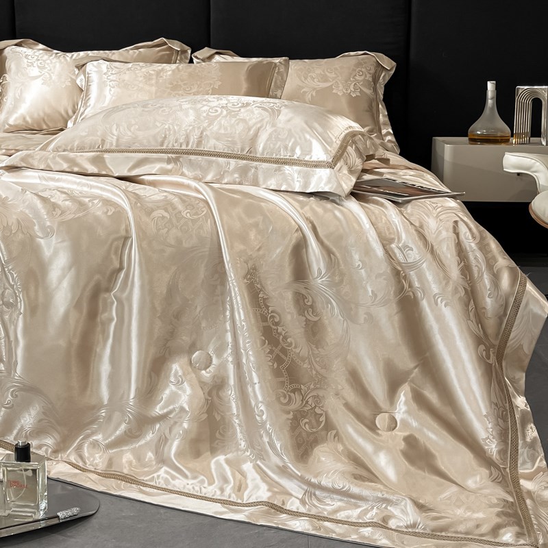 夏季天丝空调被可机洗提花夏凉被C四件套A类母婴级丝滑冰丝薄被子