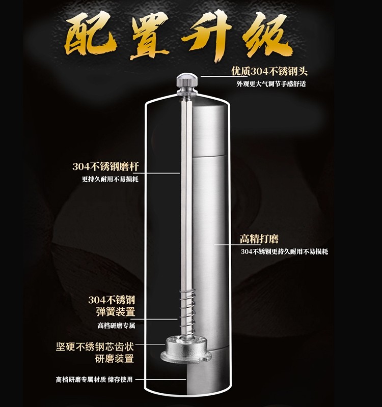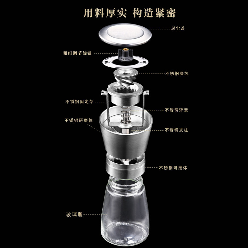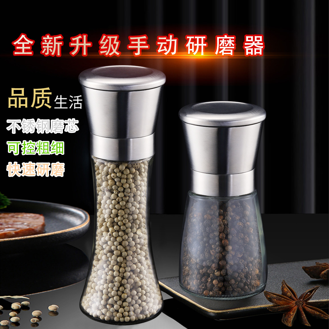 不锈钢芯胡椒研磨器家用现磨神器黑胡椒粒花椒粉手动研磨瓶调味罐