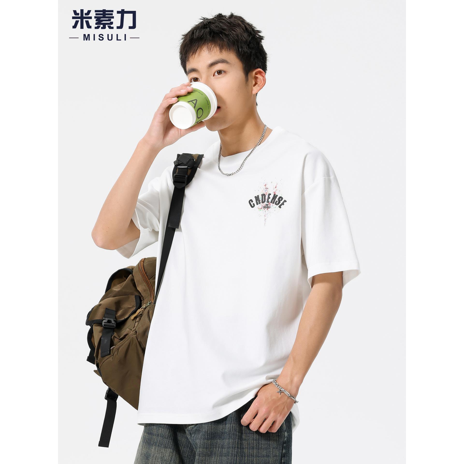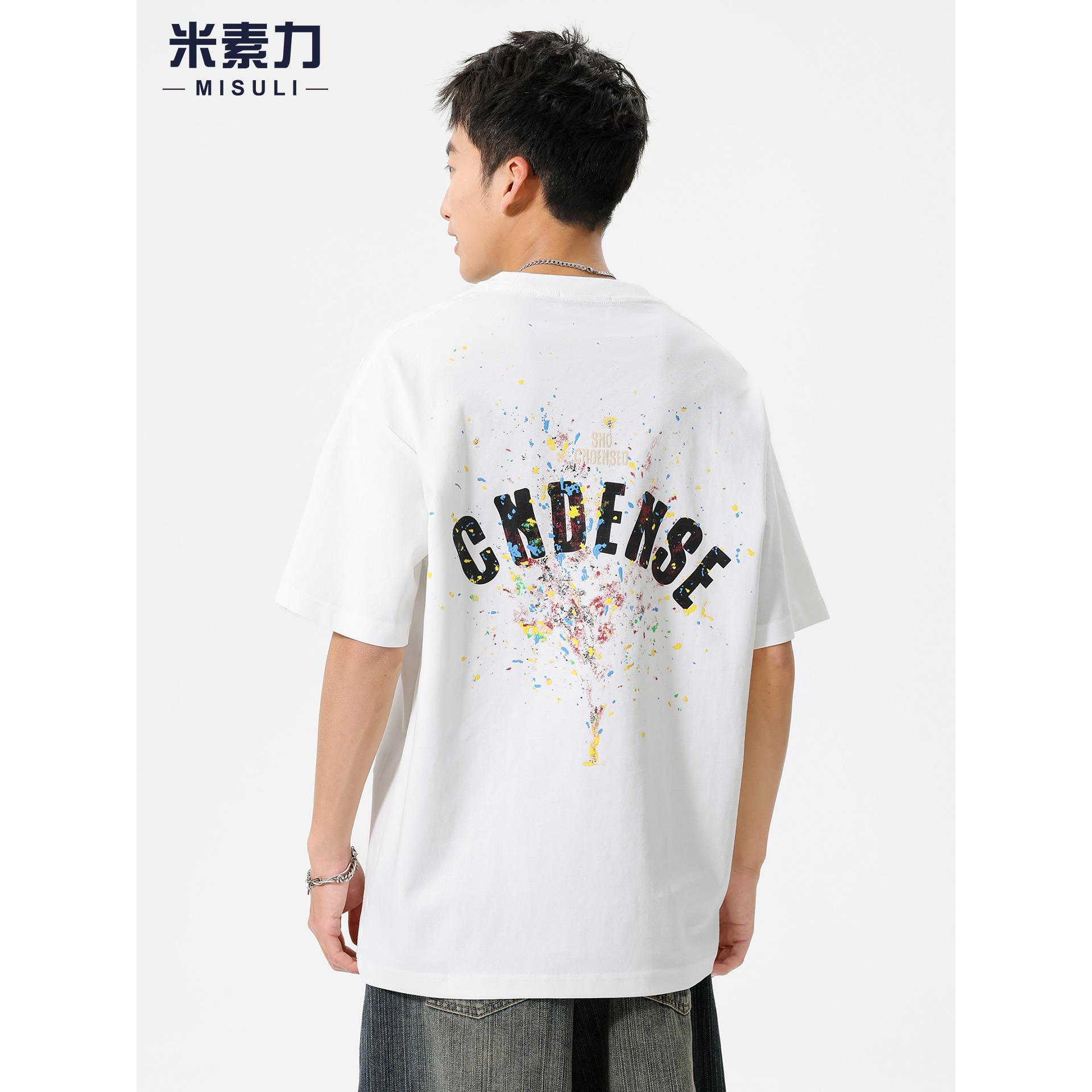 潮牌涂鸦漆点印花短袖t恤男2025新款休闲圆领半袖打底衫黑色上衣