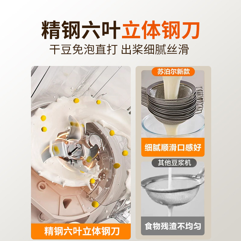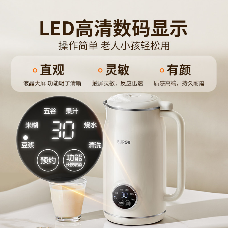 苏泊尔豆浆机1-3人家用全自动无渣免滤破壁机辅食料理机2025新款