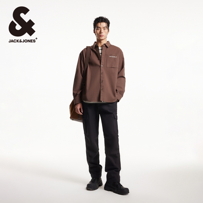 绫致杰克琼斯春夏松紧弹力抽绳字母刺绣工装带盖口袋裤子休闲裤