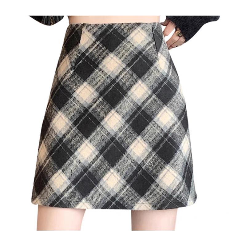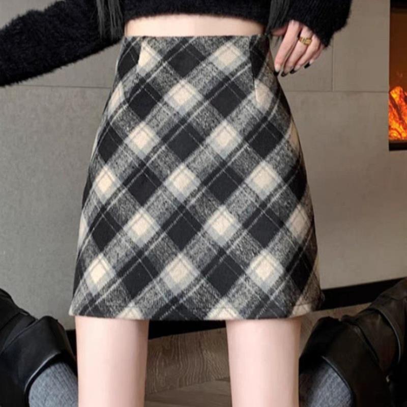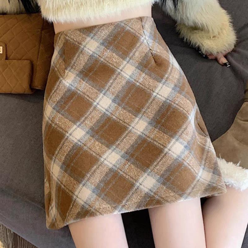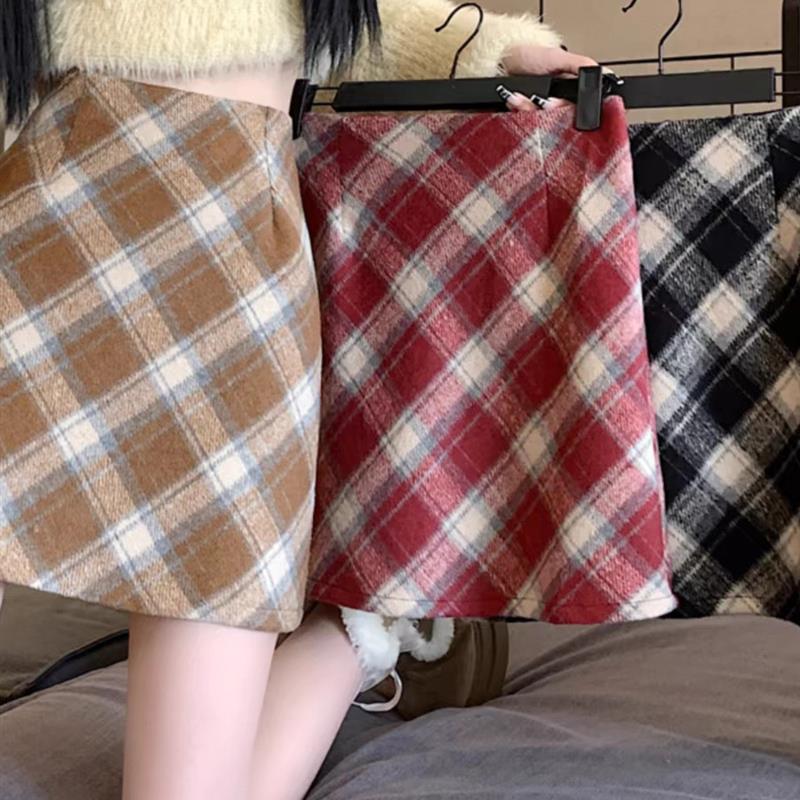 复古红色格子毛呢半身裙女秋冬款2025新款防走光高腰a字包臀短裙