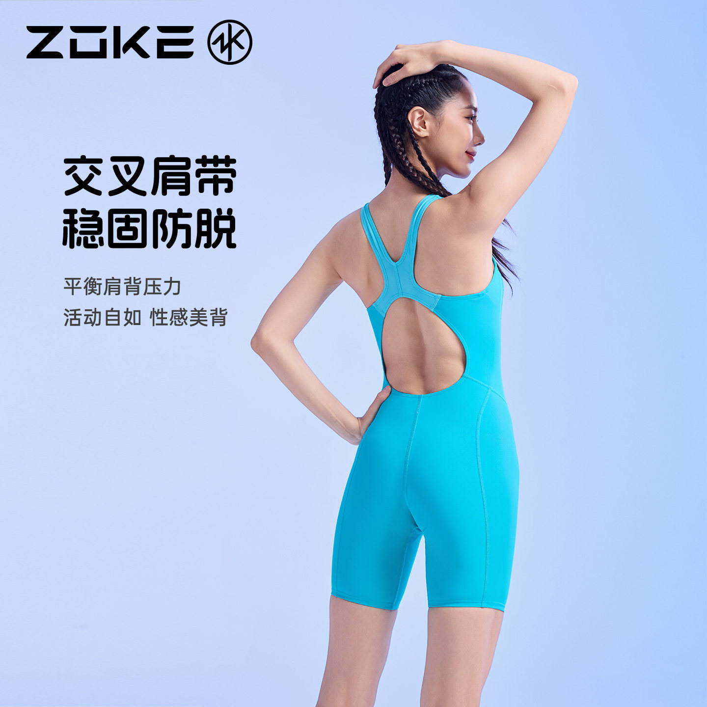 洲克女士温泉泳衣女保守连体运动夏游泳馆防晒五分纯色游泳衣zoke