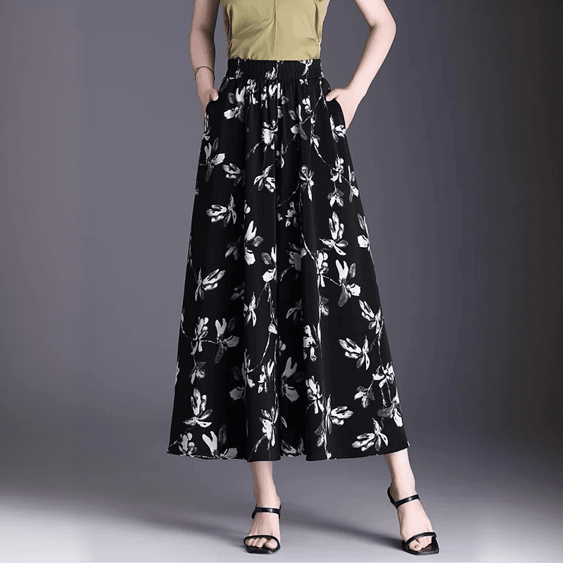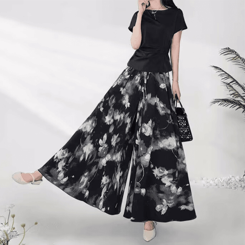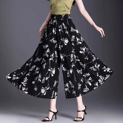 2025新款夏季薄款阔腿裤女高腰显瘦垂感八分裤妈妈装宽松印花裙裤