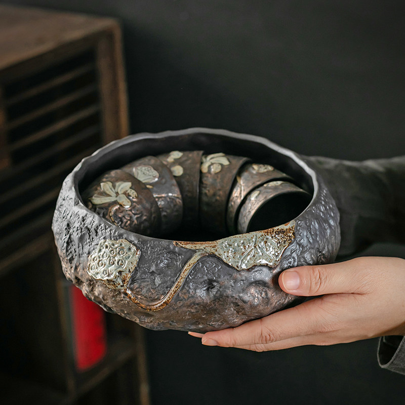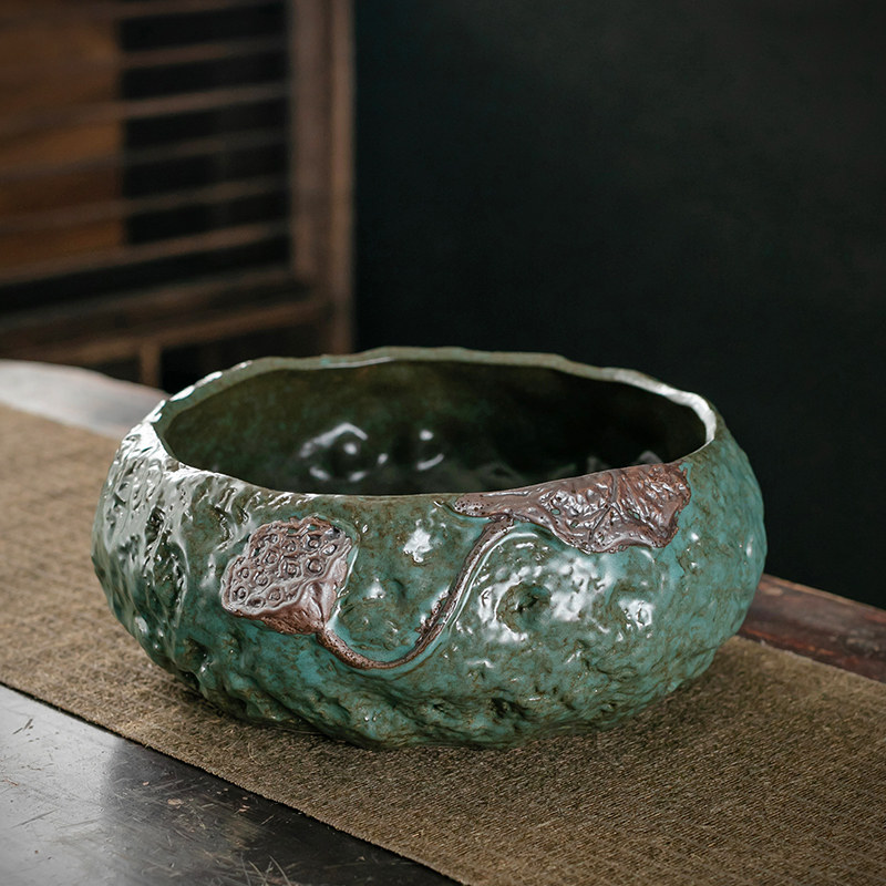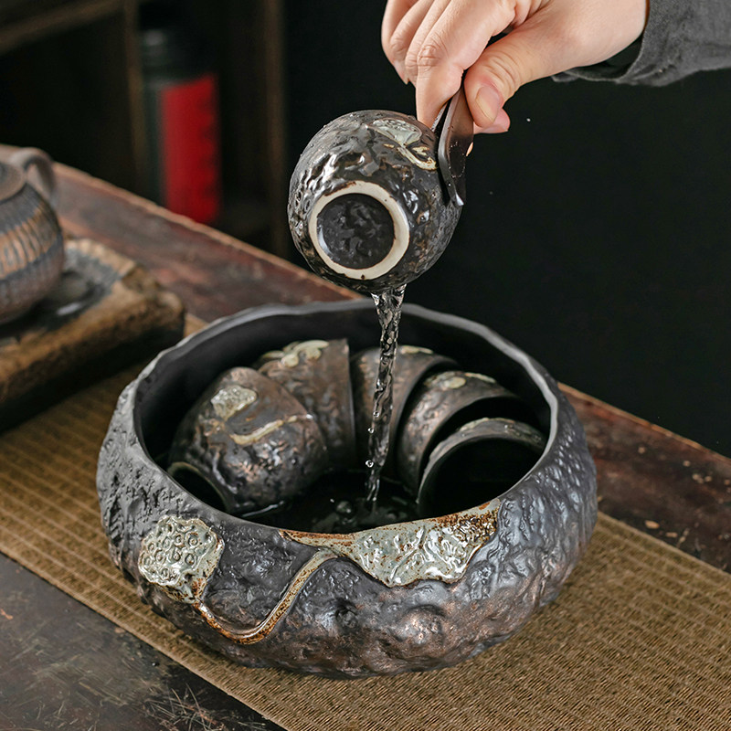 鎏金茶洗简约家用水盂洗茶器洗茶碗日式茶道零配件茶桶缸陶瓷笔洗