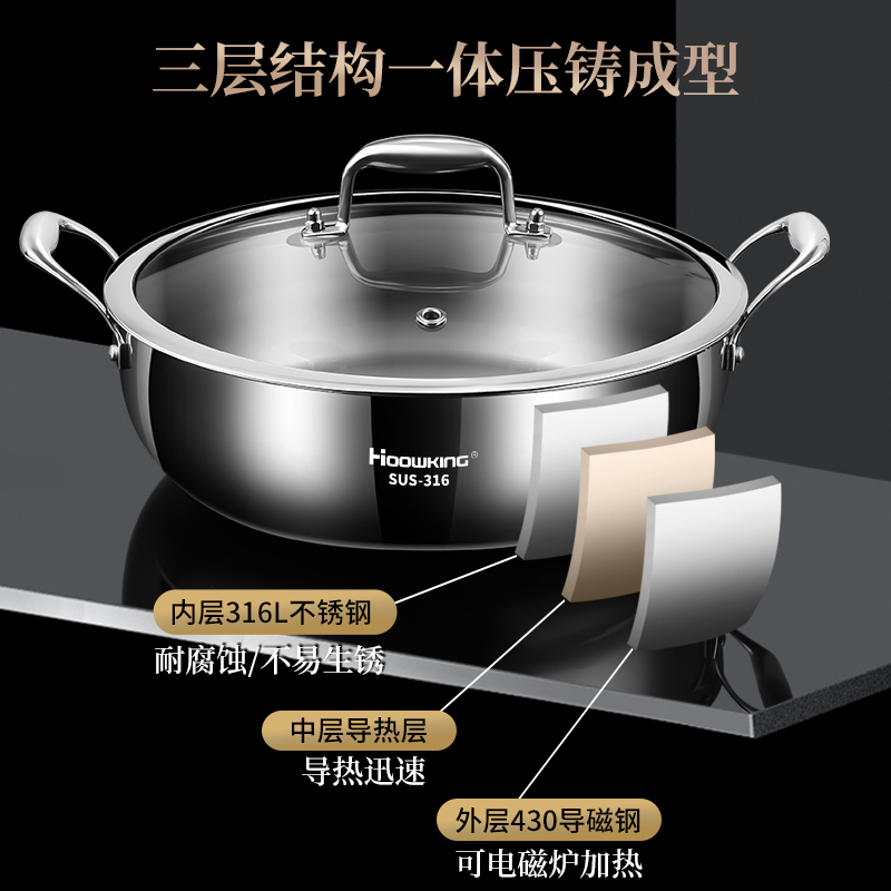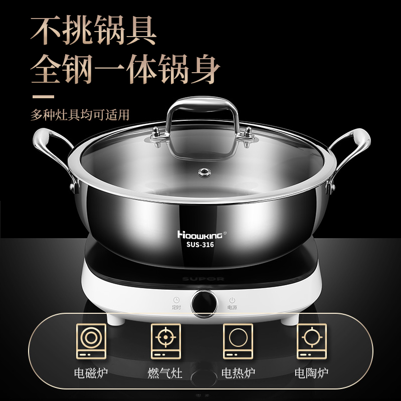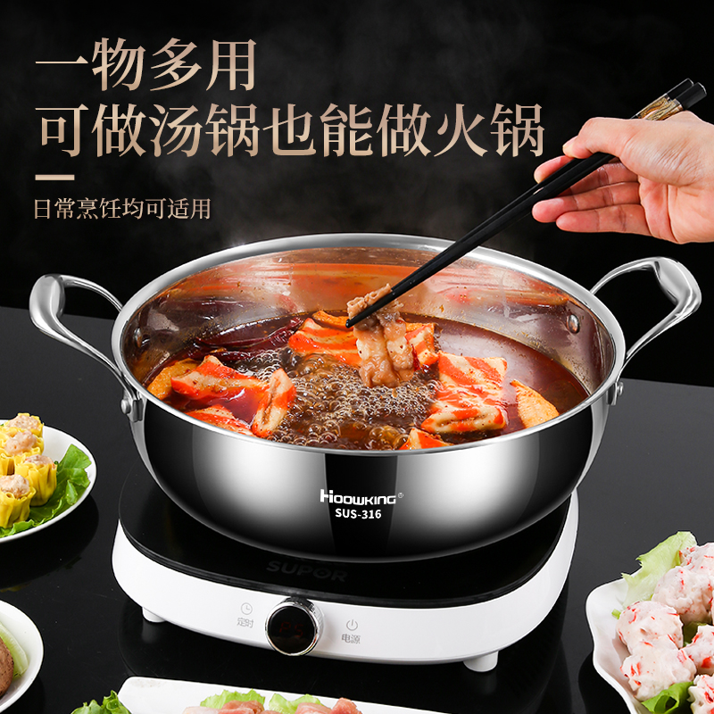 316不锈钢火锅锅加厚家用大容量汤锅燃气灶电磁炉涮锅不粘煮汤锅