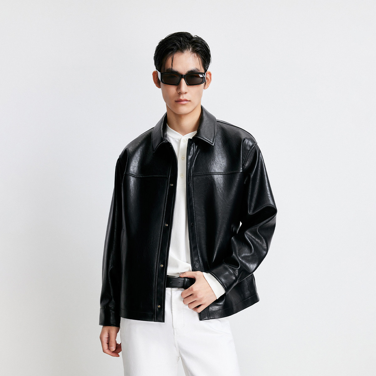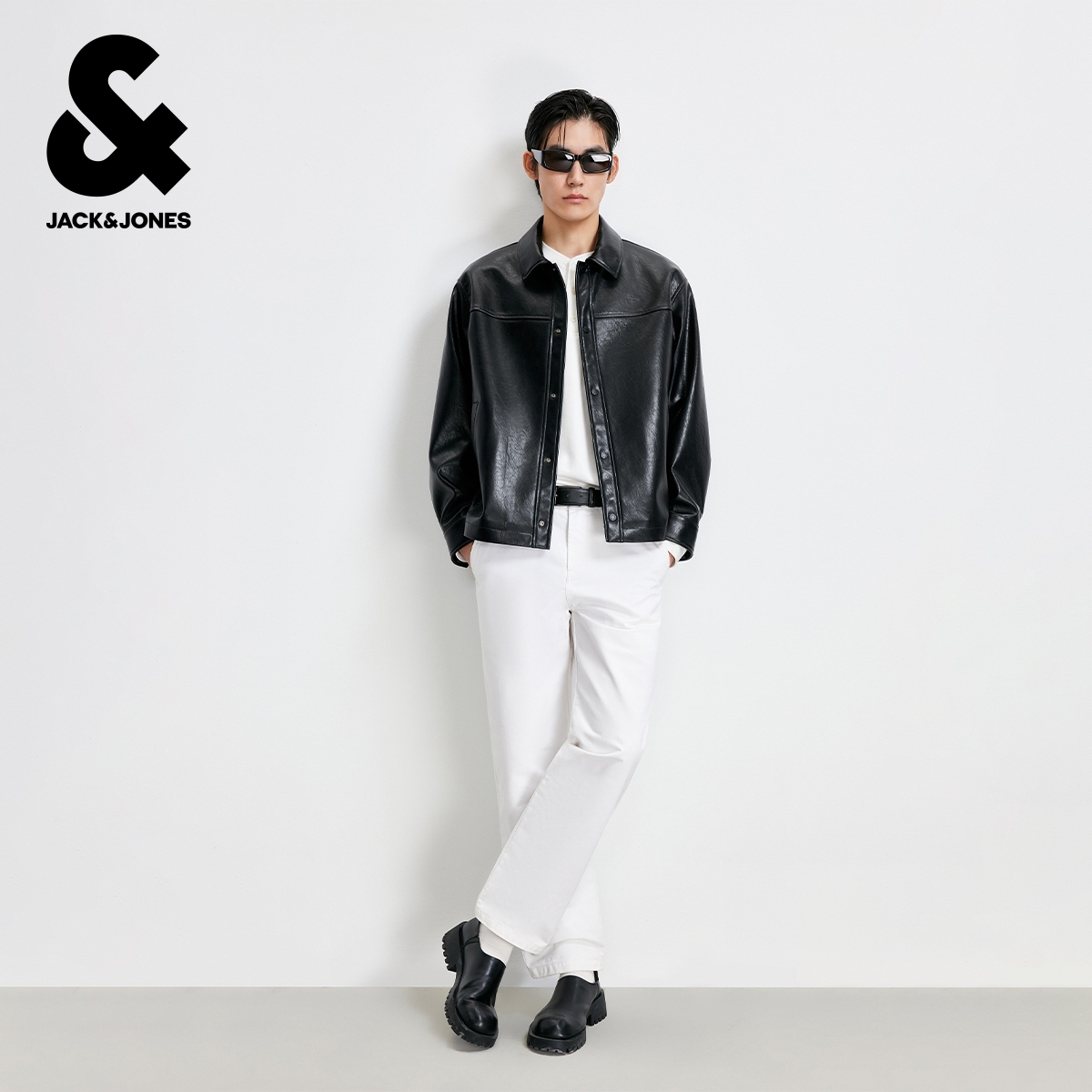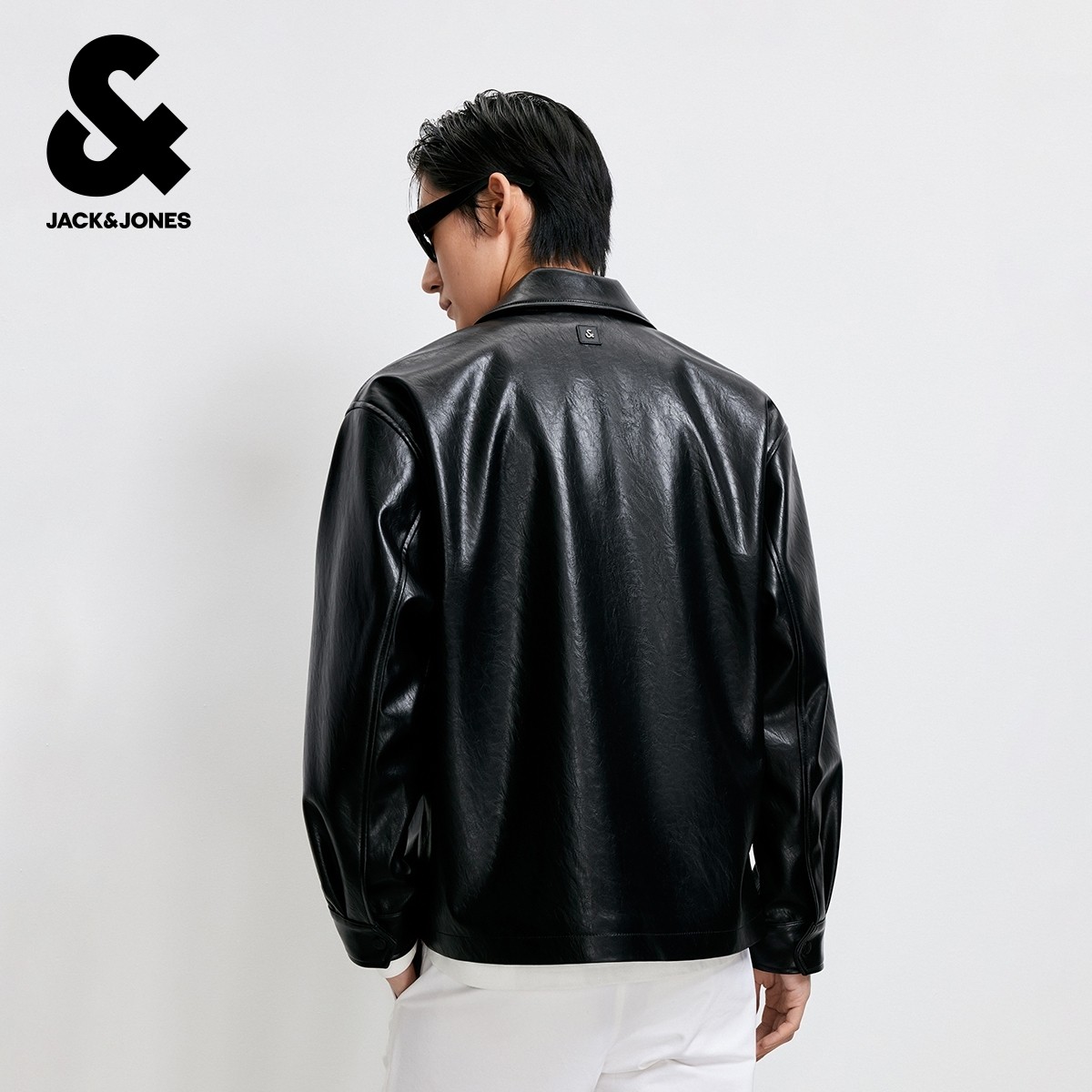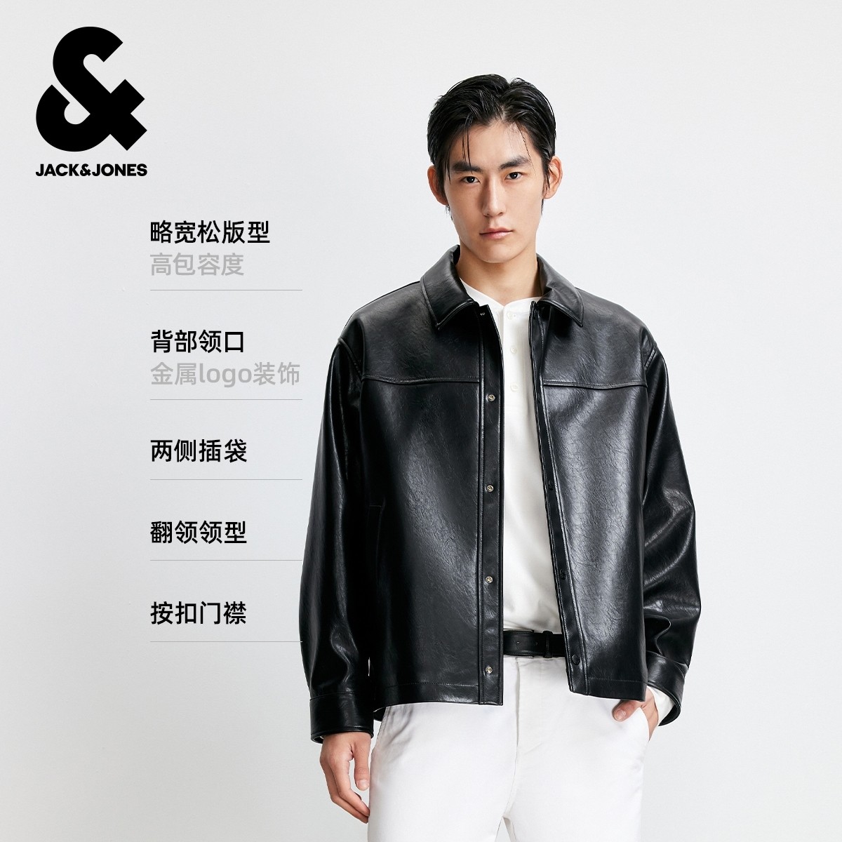 杰克琼斯男装秋季新款时尚纯色商务休闲光泽感宽松翻领夹克外套