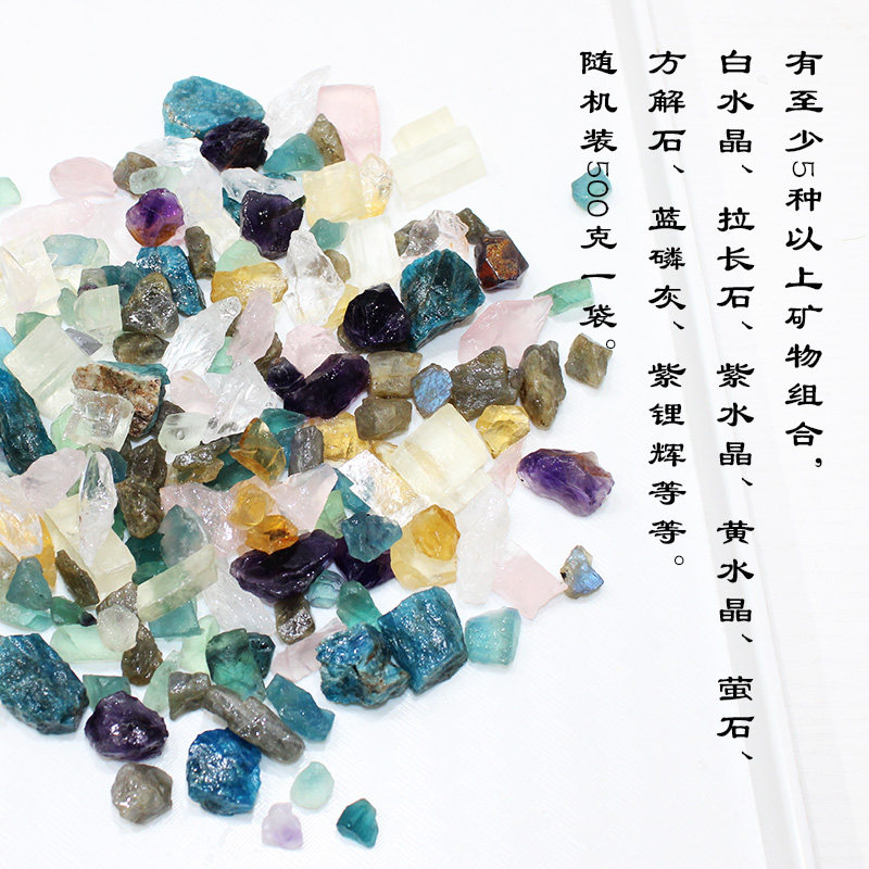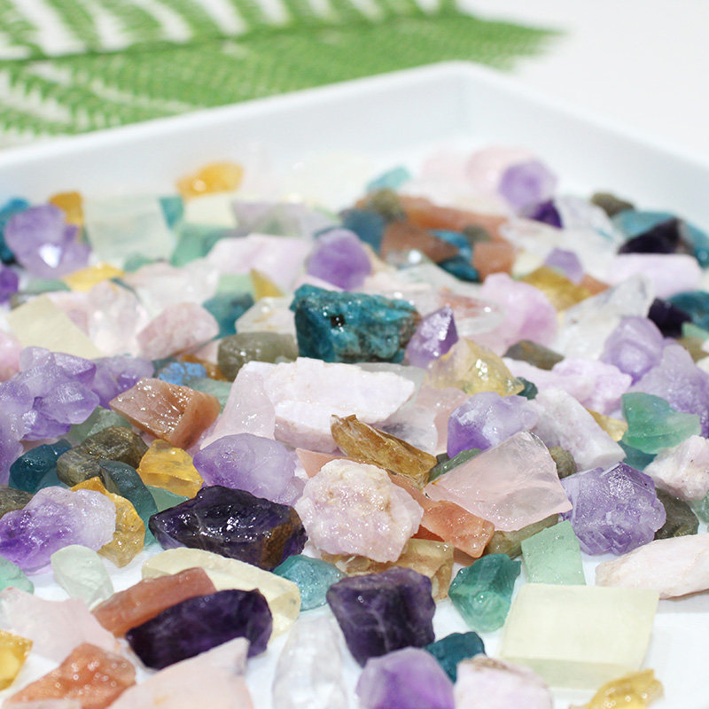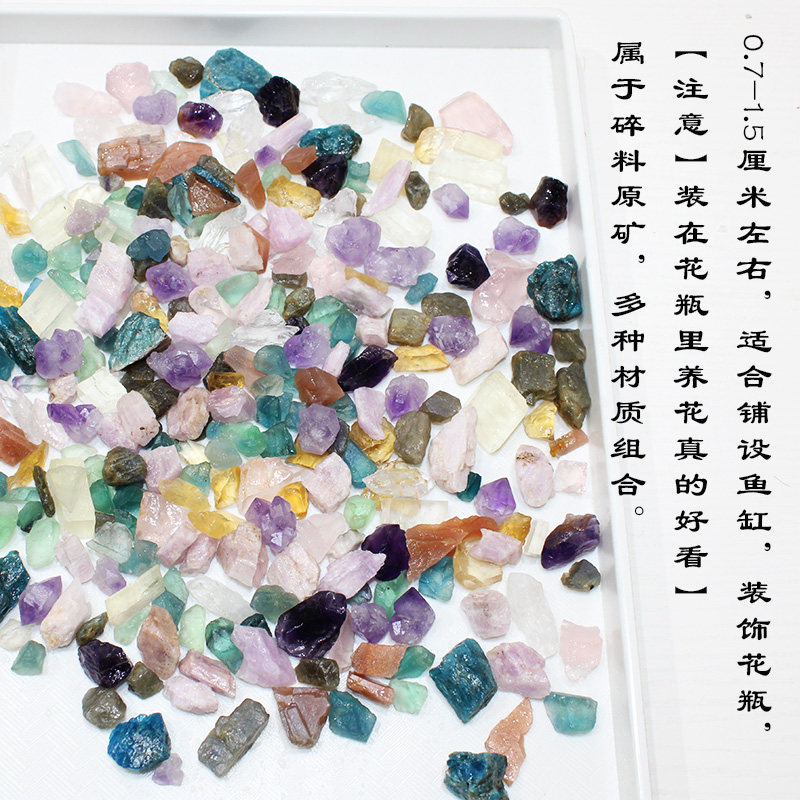 如鸿天然水晶原石矿石鱼缸石儿童宝石毛料造景彩色石头小碎宝石