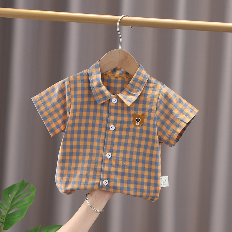 男童短袖衬衣棉质儿童婴儿小童纯棉半袖衬衫宝宝格子上衣薄款夏季