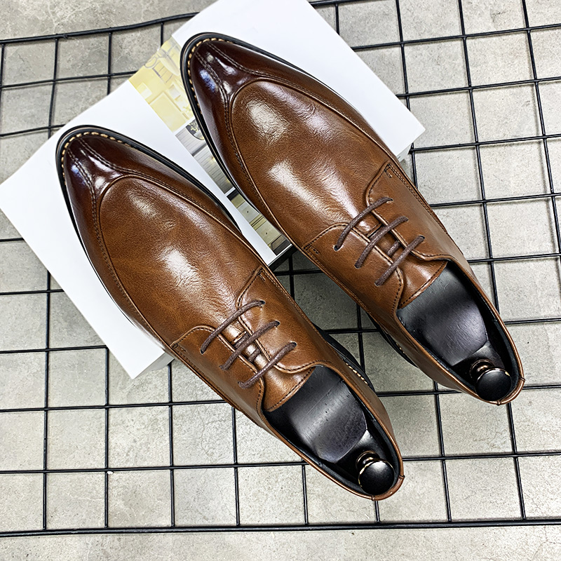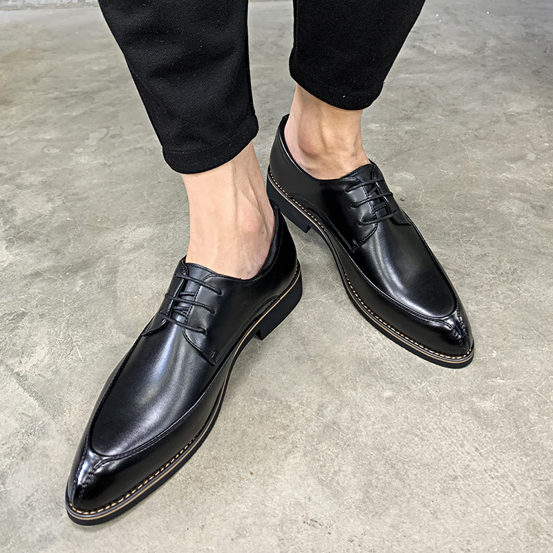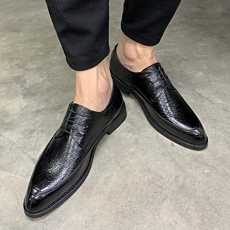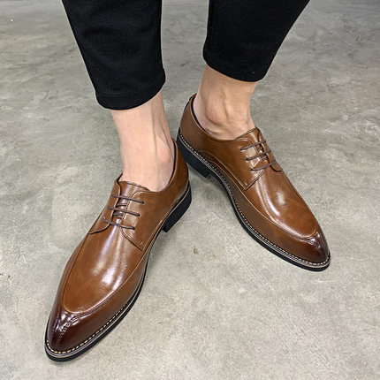 皮鞋男韩版透气尖头发型师潮流商务内增高英伦新郎结婚男士小皮鞋