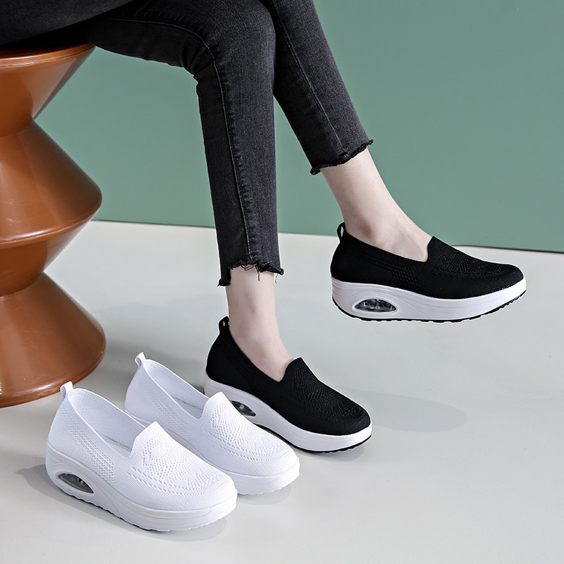 老北京布鞋女春秋一脚蹬透气网面厚底气垫鞋软底休闲鞋大码摇摇鞋