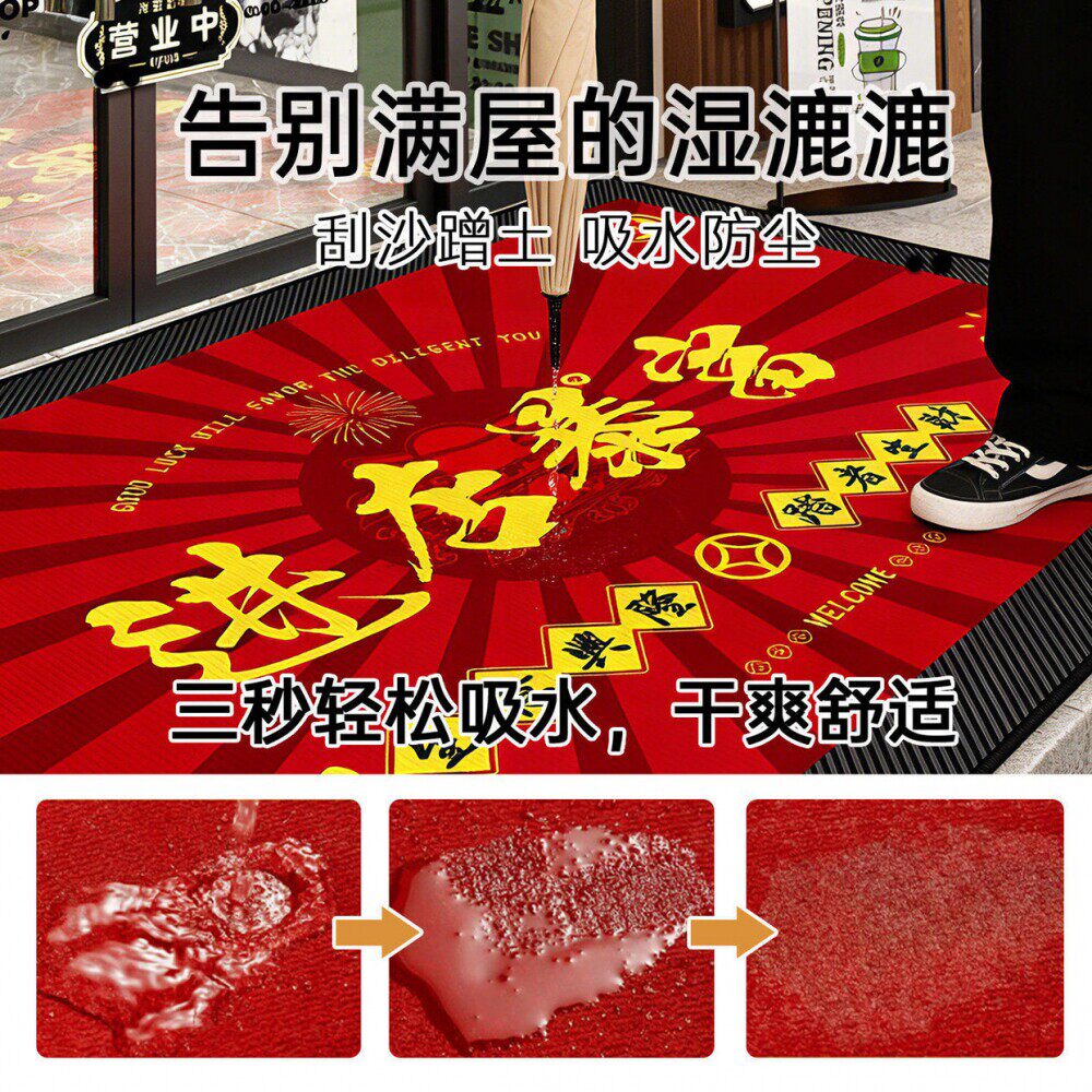欢迎光临地垫红色商用地毯店铺商店超市门垫出入平安商铺迎宾脚垫