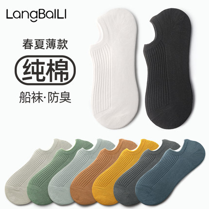 简约隐形夏季男纯棉船袜