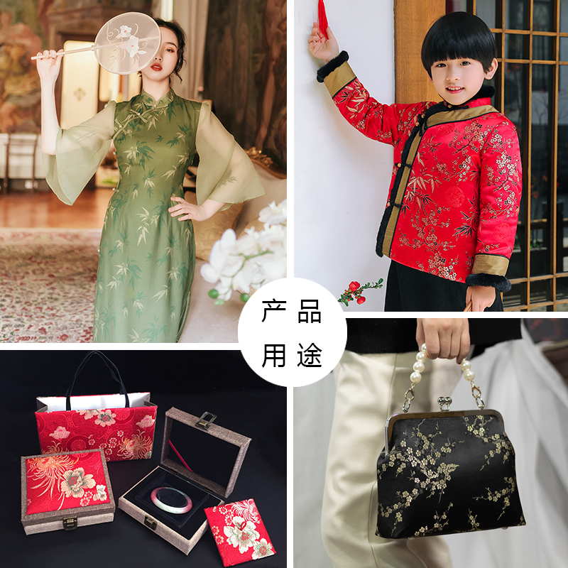 织锦缎布料中国风梅兰竹菊旗袍唐装汉服面料沙发坐垫手工绸缎布料