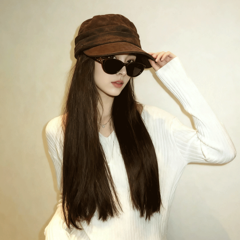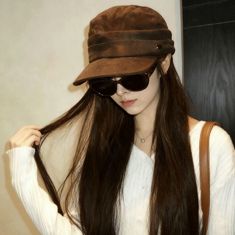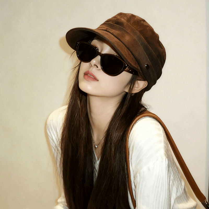 麂皮绒马术帽女2025新款秋冬复古美拉德褶皱平顶报童帽百搭贝雷帽