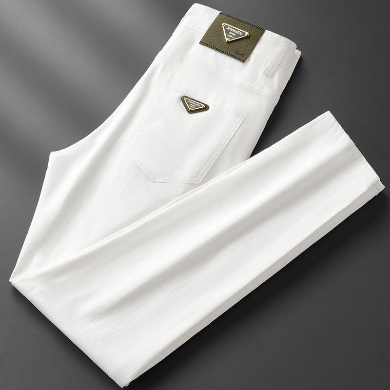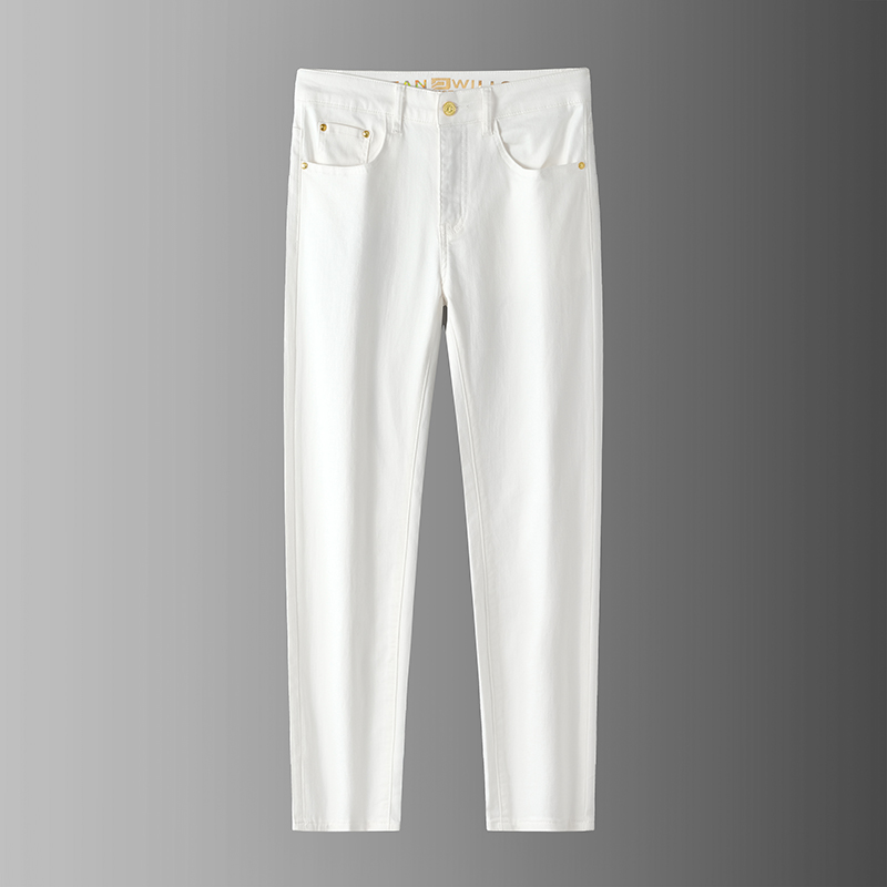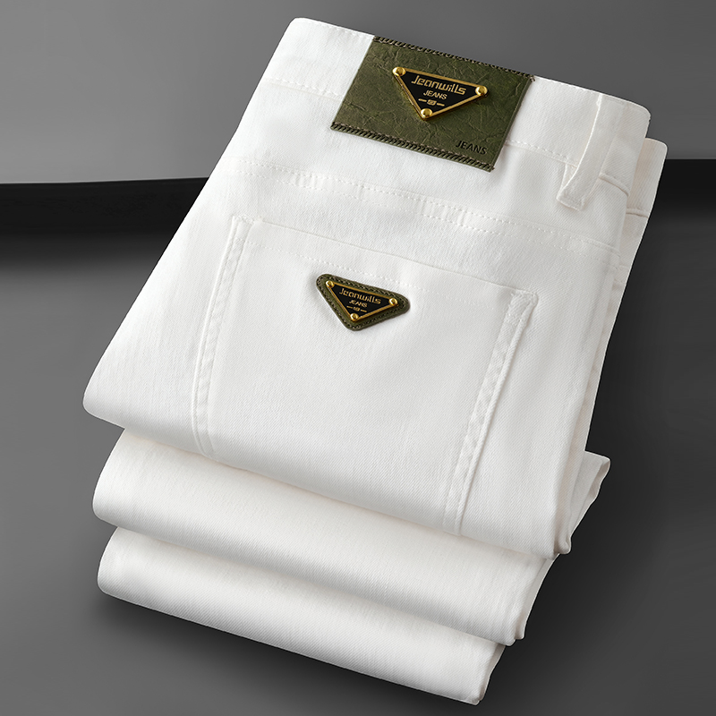 秋冬款欧货轻奢加厚加绒男士白色三防牛仔长裤弹力修身小直筒裤潮