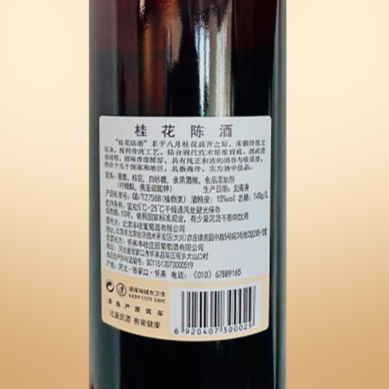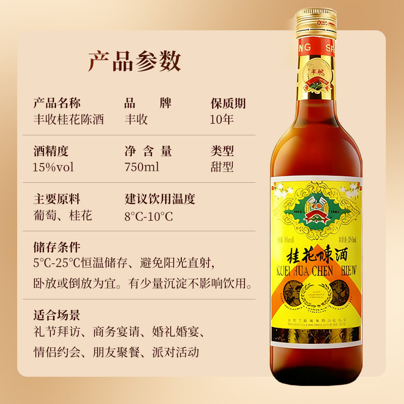 【丰收酒官方旗舰店】桂花陈酒老北京特产甜型葡萄酒750ml/瓶15度