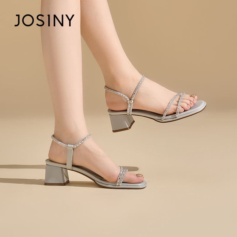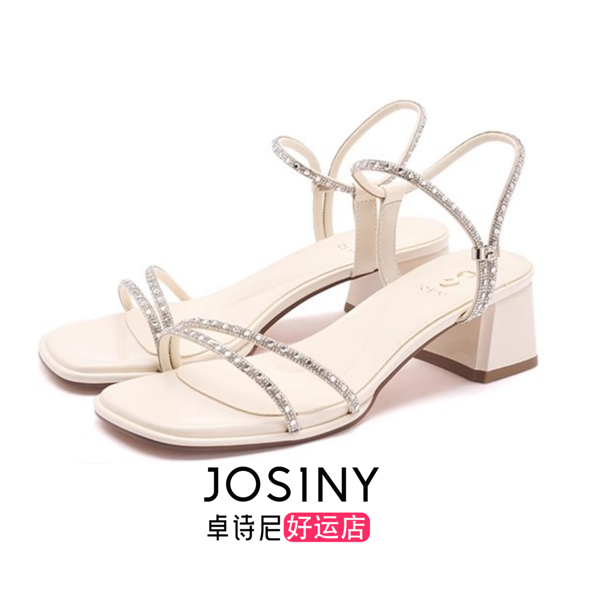 卓诗尼女鞋新款夏款中跟凉鞋女款粗跟低跟夏季春夏细带闪亮夏天鞋
