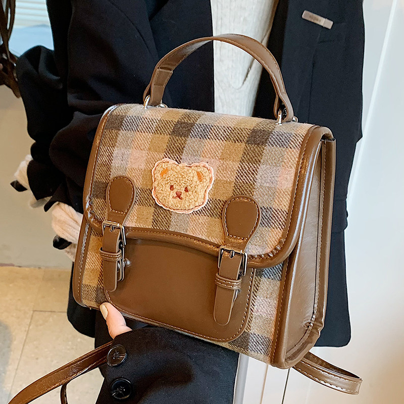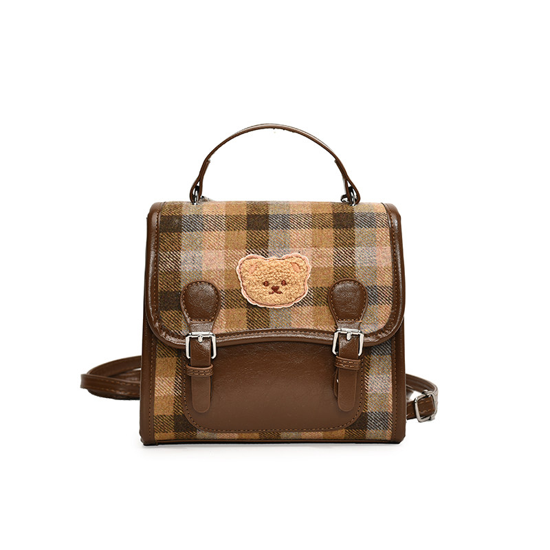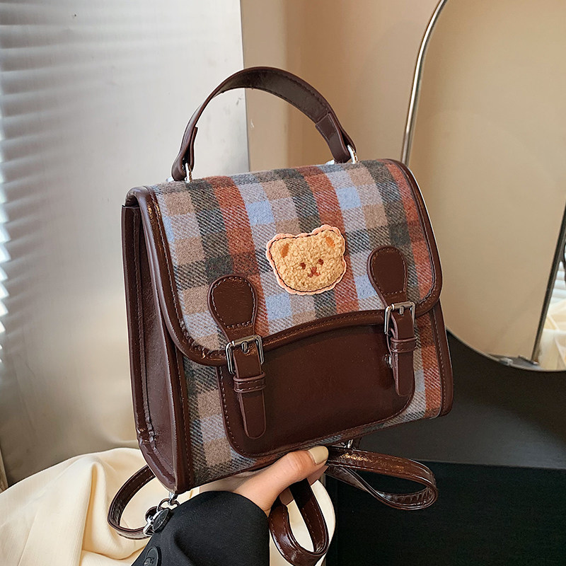 今年流行格纹双肩包女2026新款秋冬百搭毛呢学院风背包复古手拎包