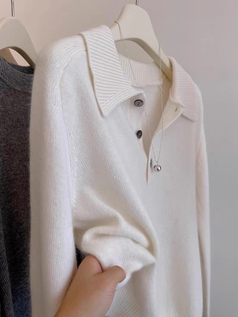 新款Polo领羊毛衫女宽松韩版时尚百搭针织打底显瘦翻领毛衣