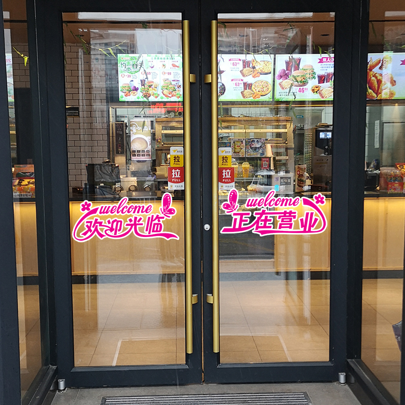创意个性欢迎光临玻璃门贴纸店铺推拉门装饰正常营业透明整张贴画