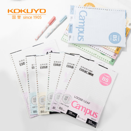 日本kokuyo国誉Campus彩色内页活页纸活页替芯b5/a5活页本替换页