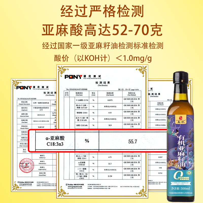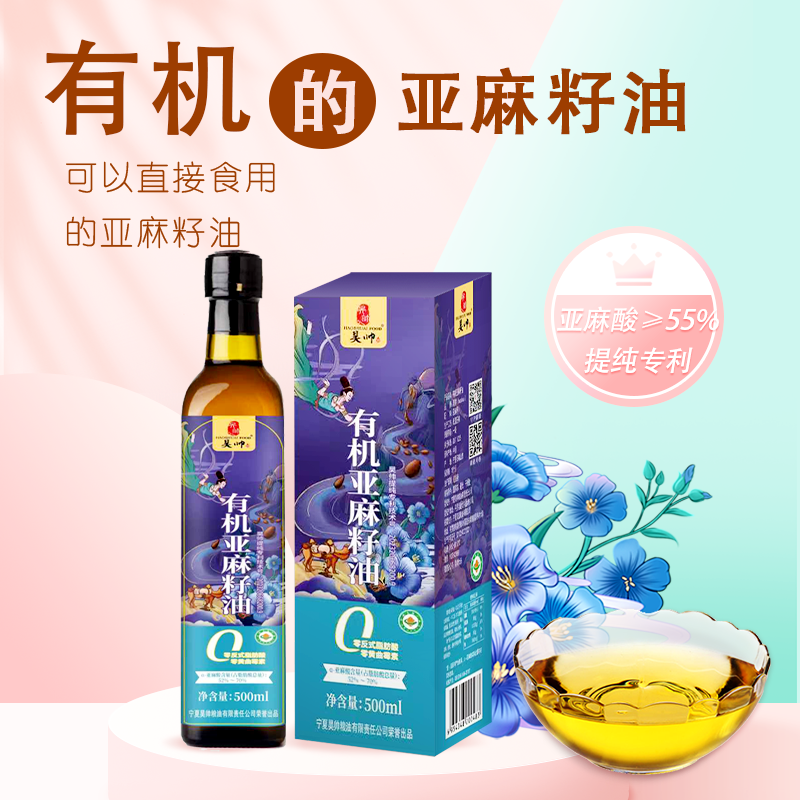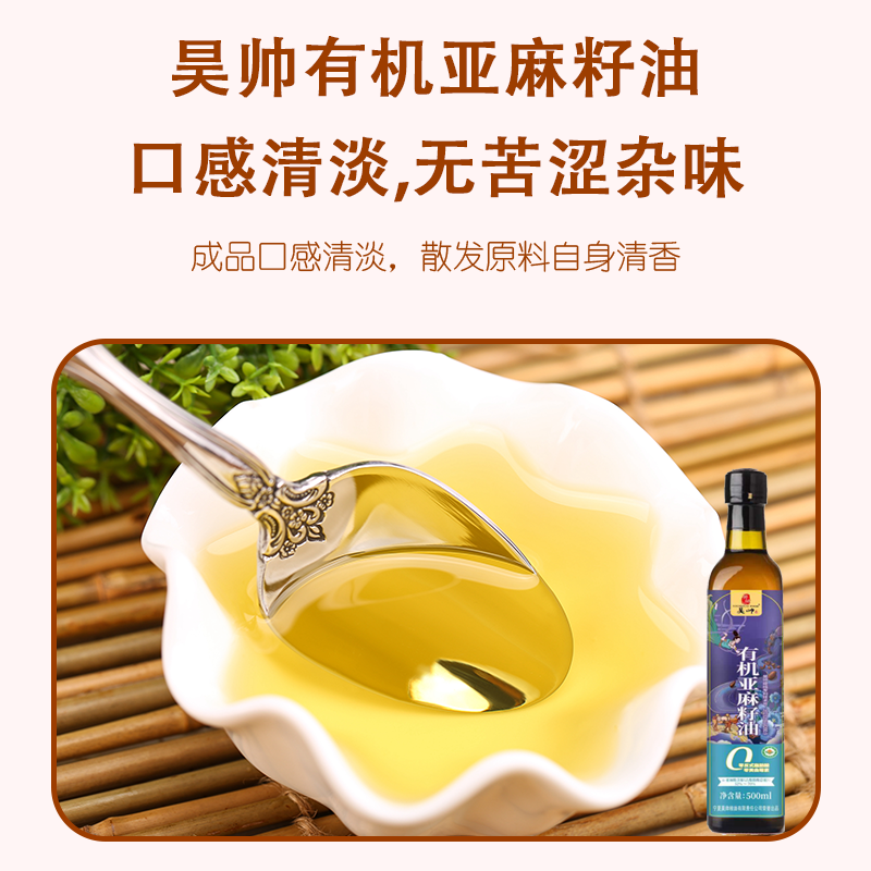 昊帅有机亚麻籽油500ml小瓶食用油家庭款可热炒低温冷榨