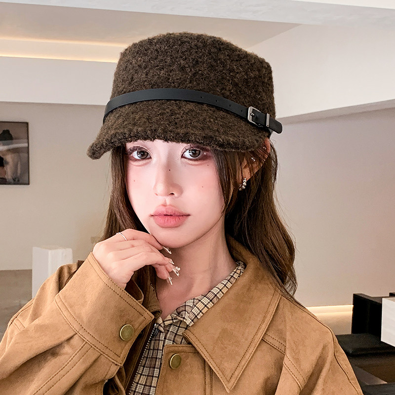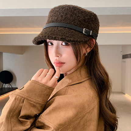 日系平顶马术帽2025新款秋冬时尚羊羔绒保暖防寒显脸小鸭舌帽子女