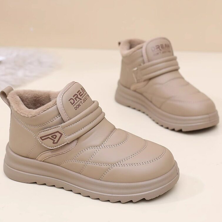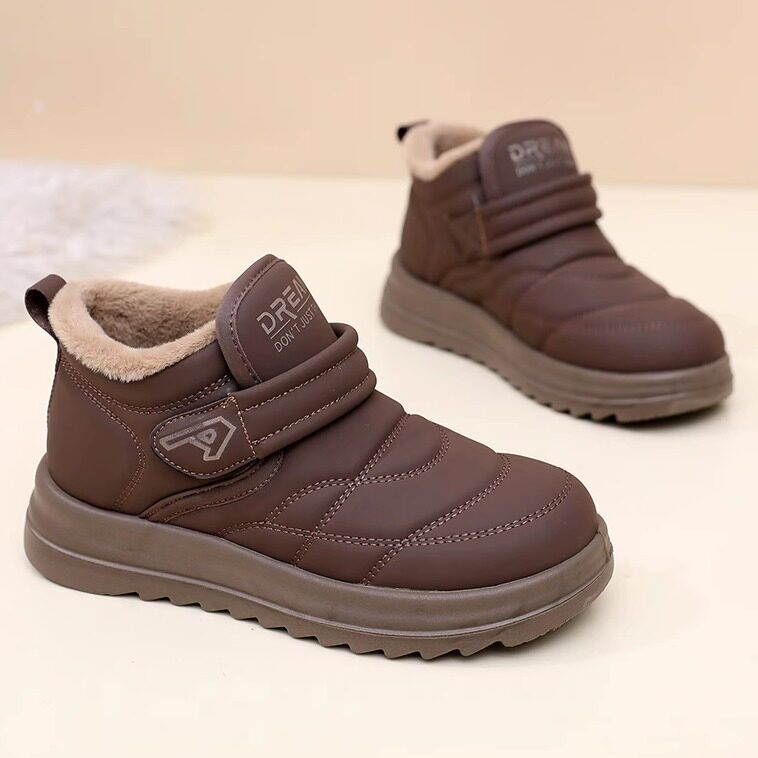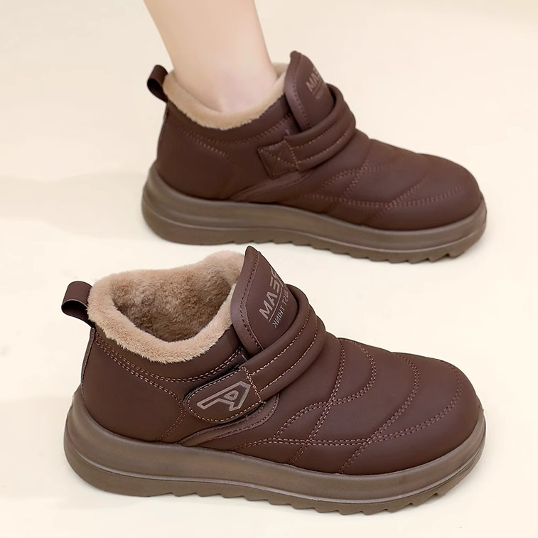 2025冬季老北京棉鞋女皮面加绒防水一脚蹬妈妈棉靴保暖防滑雪地靴