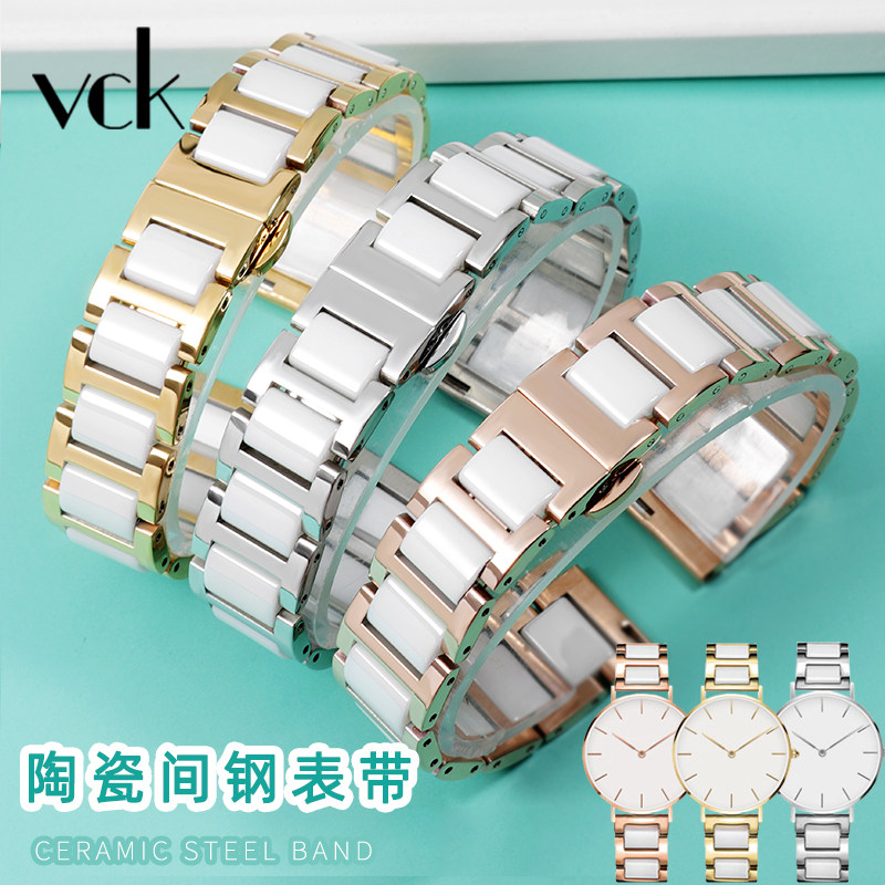 适配天梭1853心媛手表带 杜鲁尔T099臻时卡森 精钢间陶瓷女表链