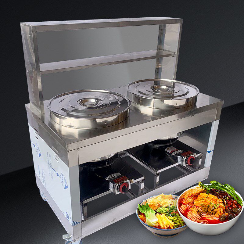 煮面粉面炉牛杂车 粉面车不锈钢推车 双孔烫粉炉早餐三轮车摆摊车