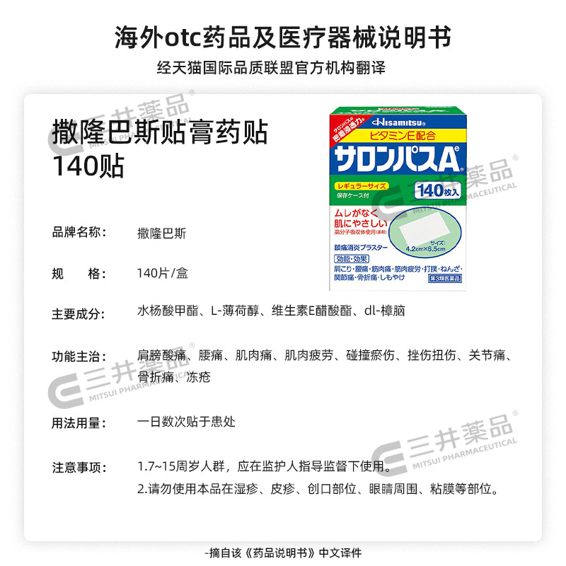 日本膏药膏贴撒隆巴斯贴140片肩颈酸痛腰肌劳损关节痛久九光膏贴