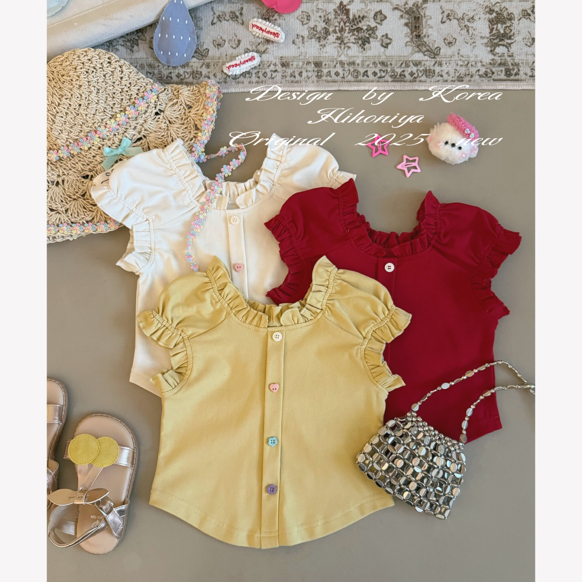 Spring韩国童装2025夏季新款宝宝泡泡袖坎肩甜美短袖女童圆领T恤